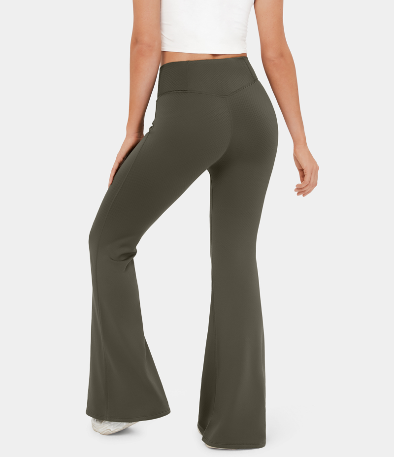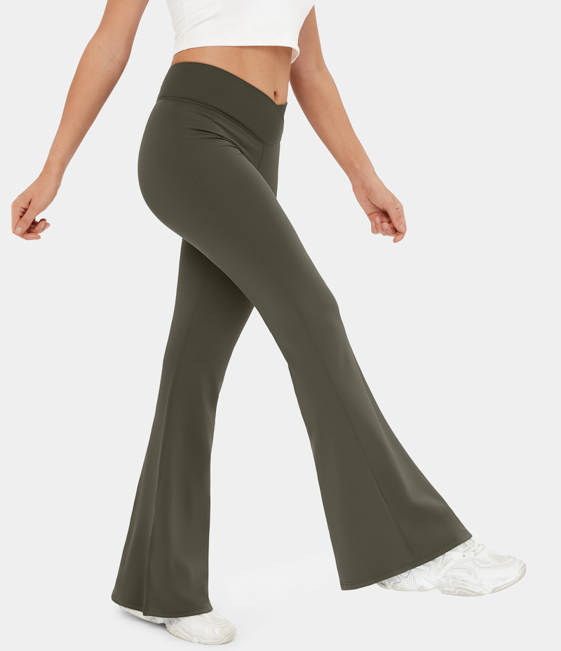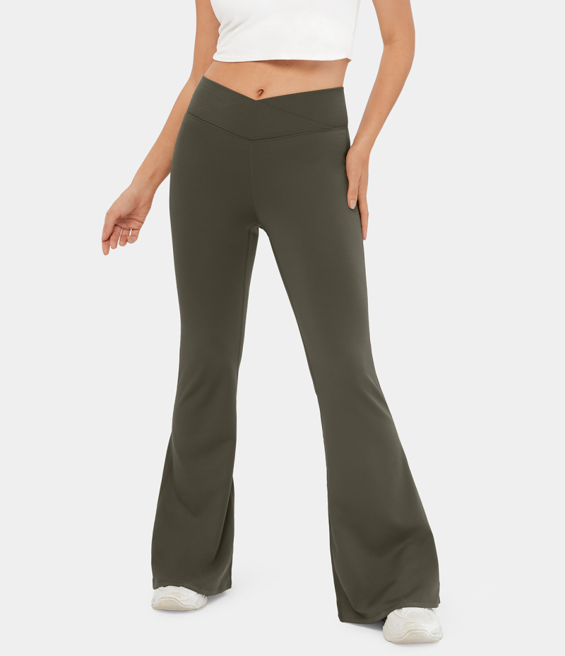 :: Halara 3D Fleece Crossover High Waisted Back Pocket Super Flare Fleece Yoga Women's Leggings Winter Moss | 578416-YKU