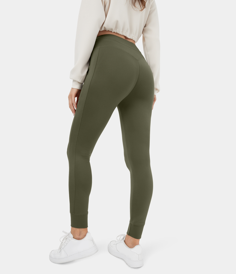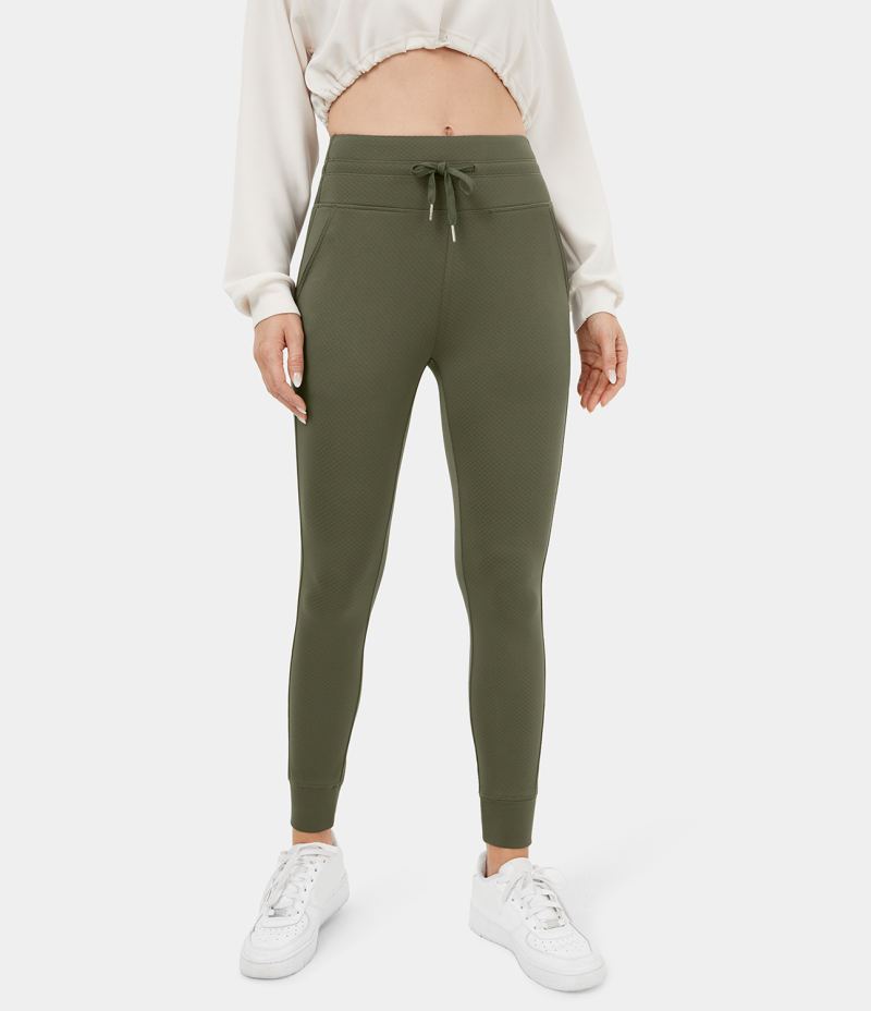 :: Halara 3D Fleece High Waisted Drawstring Side Pocket Plain Fleece Full Length Women's Jogger Winter Moss | 306241-KTZ