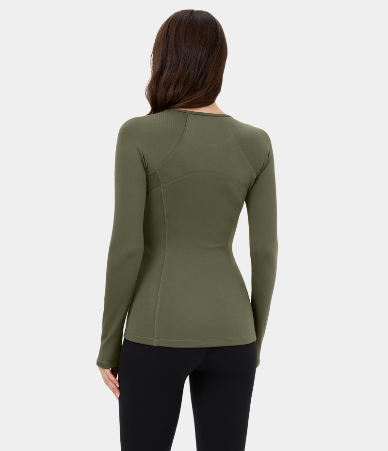 :: Halara 3D Fleece Round Neck Side Zip Pocket Fleece Bodycon Casual Sports Sweatshirt Women's Tops Winter Moss | PKXYOCD-52