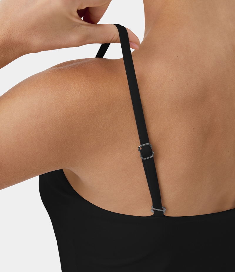 :: Halara Adjustable Strap Ruched Bodycon Mini Casual Women's Dress Black | 385426-VSH