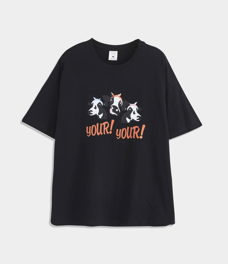 :: Halara Animal Print Round Neck T-Shirt Women's Tops Black | MKTDGUO-83