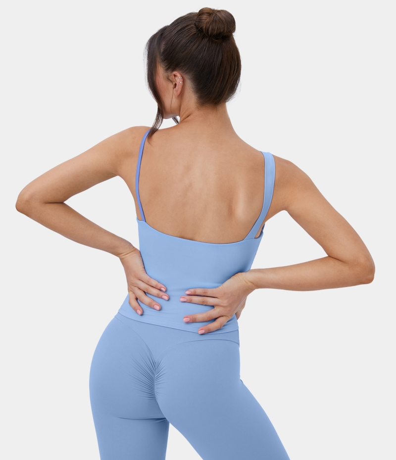 :: Halara Asymmetric Strap Backless Cropped Yoga Tank Women's Tops Open Air | IYBFEDO-45