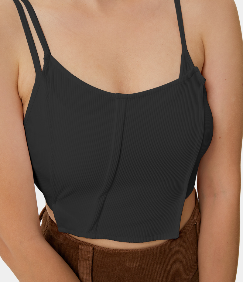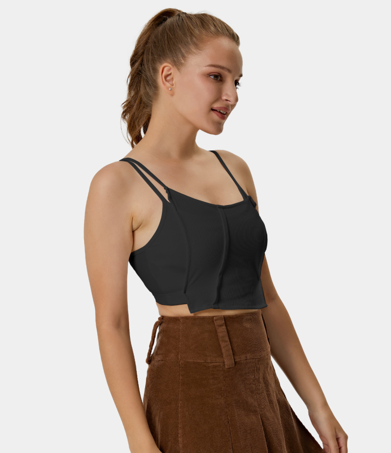 :: Halara Asymmetric Straps Ribbed Knit Irregular Casual Cropped Tank Women's Tops Black | OLXKZAT-06