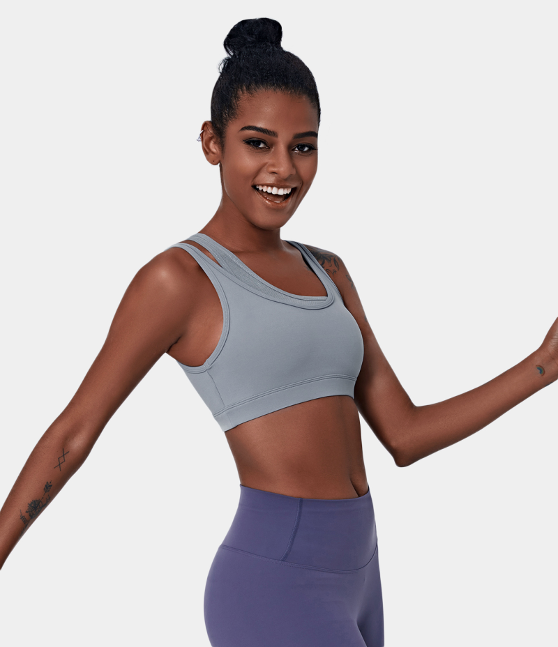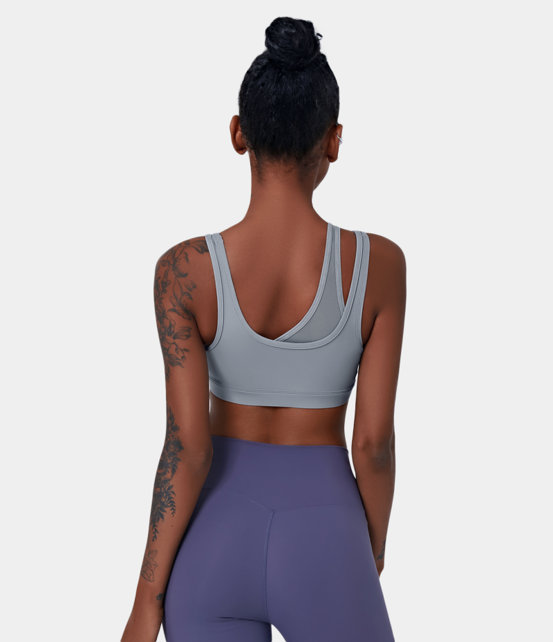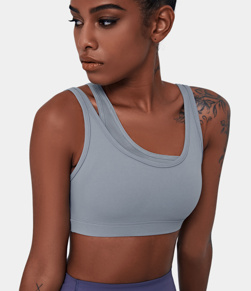 :: Halara Asymmetrical Neck Contrast Mesh Plain Tank Women's Tops Aloof Grey | LQGIMRX-15