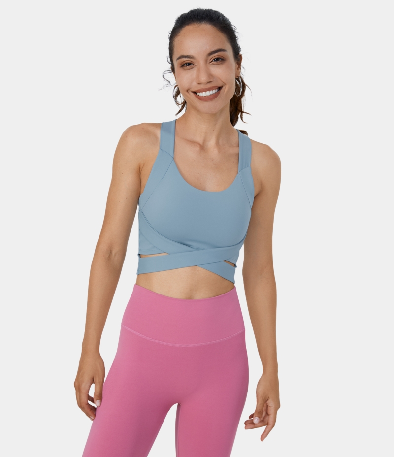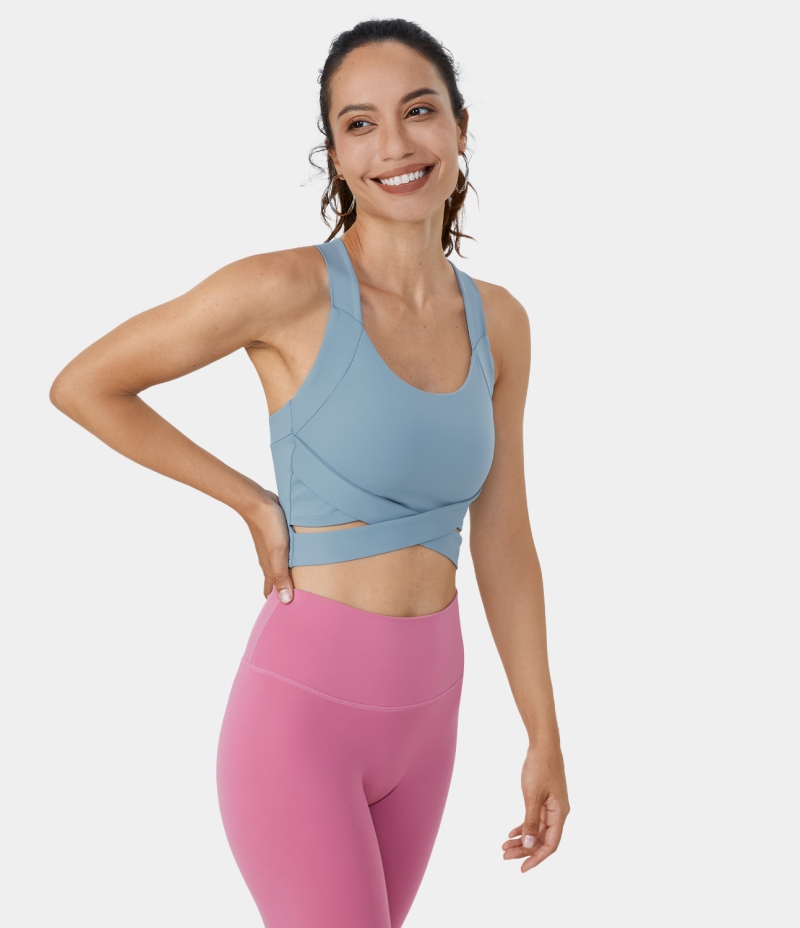 :: Halara Backless Crisscross Crossover Hem Cropped Yoga Tank Women's Tops Glacier Lake | ITWSEUX-84