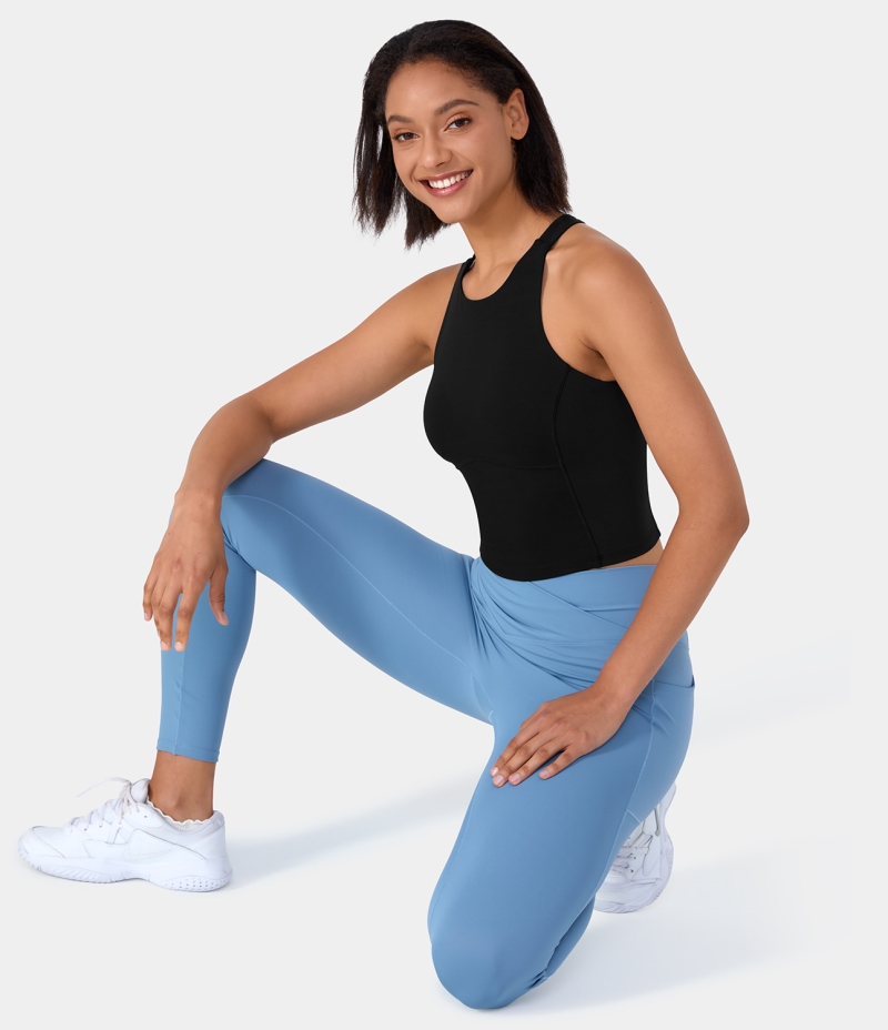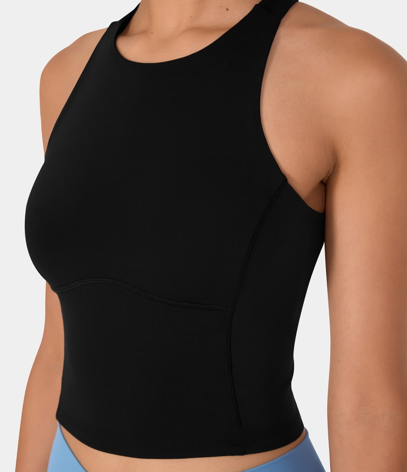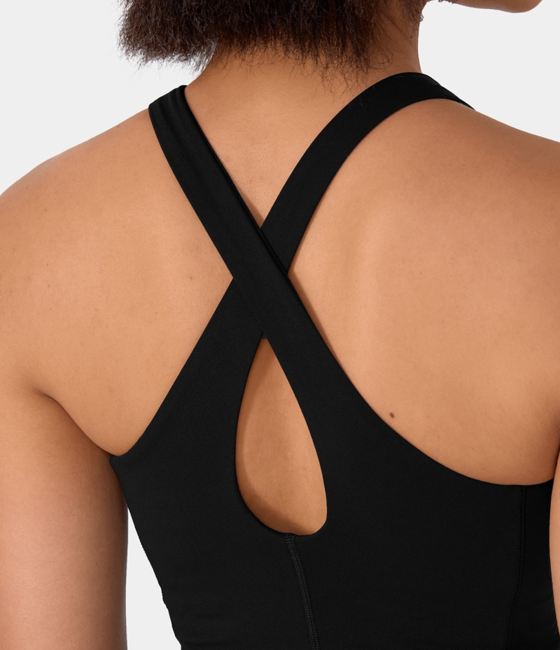 :: Halara Backless Crisscross Cut Out Cropped Yoga Tank Women's Tops Black | UCGFSMO-26