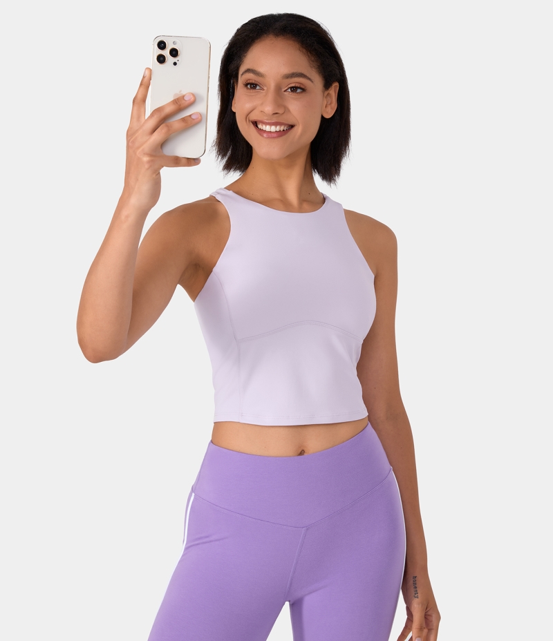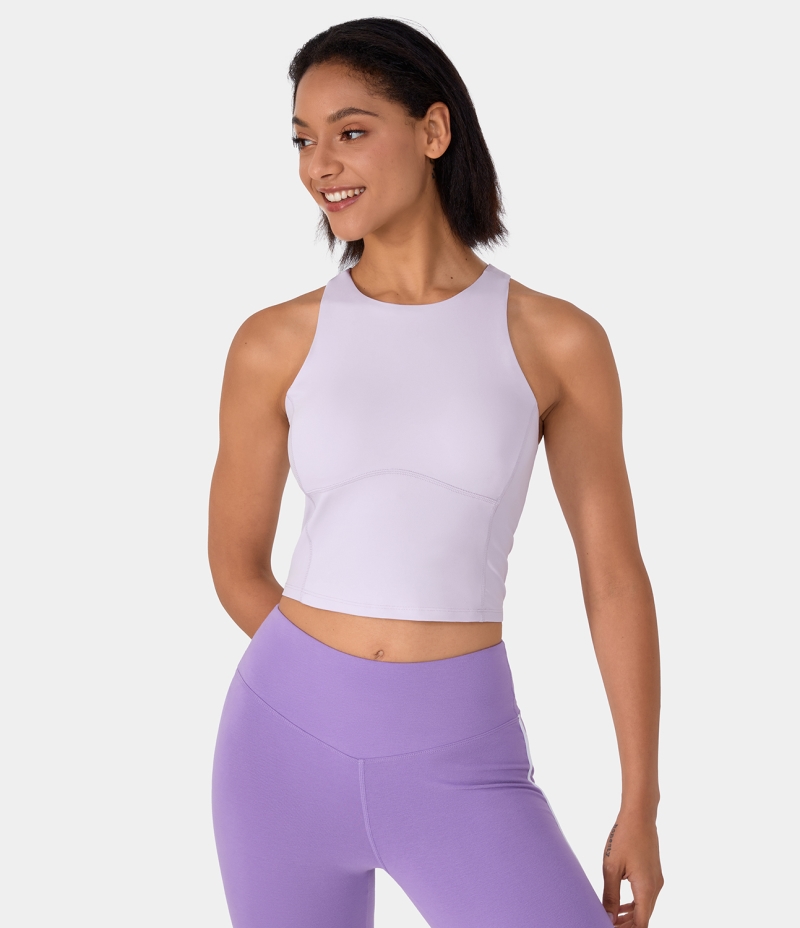 :: Halara Backless Crisscross Cut Out Cropped Yoga Tank Women's Tops Lavender Fog | BYNSUQW-92