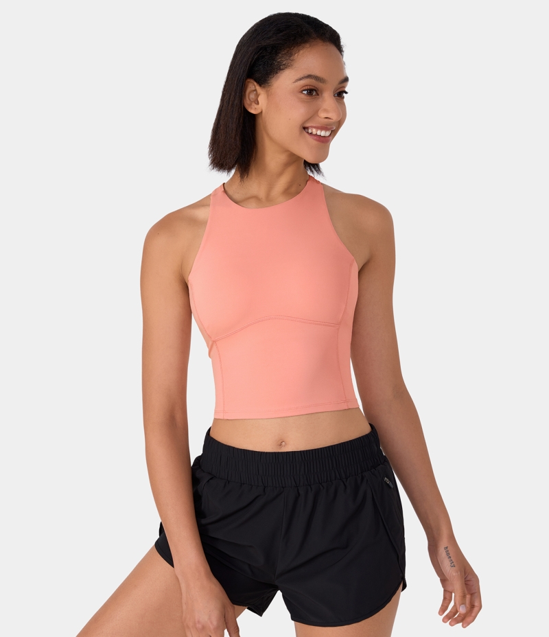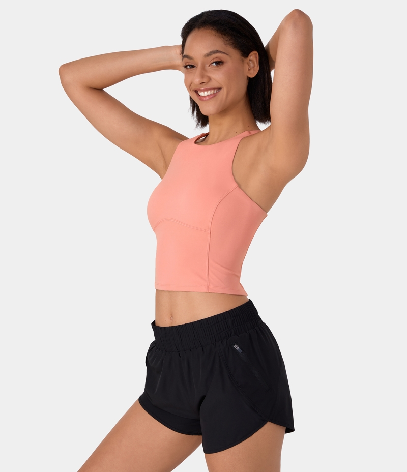 Halara Backless Crisscross Cut Out Cropped Yoga Tank Women's Tops Powder Pink | RBKWGCS-68