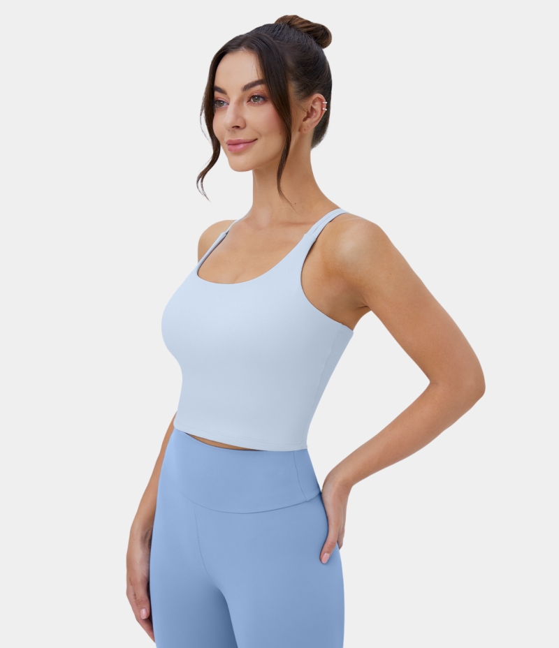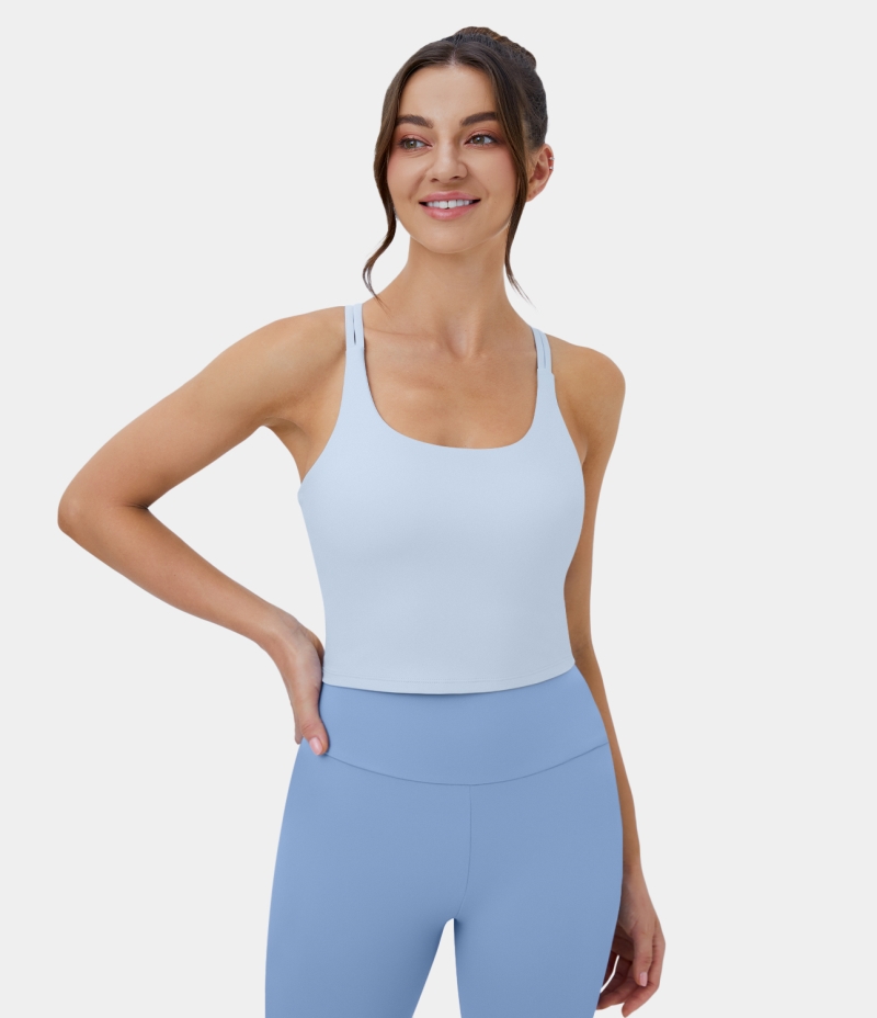 :: Halara Backless Crisscross Double Straps Cut Out Cropped Yoga Tank Women's Tops Ancient Water | GRNBSTU-53