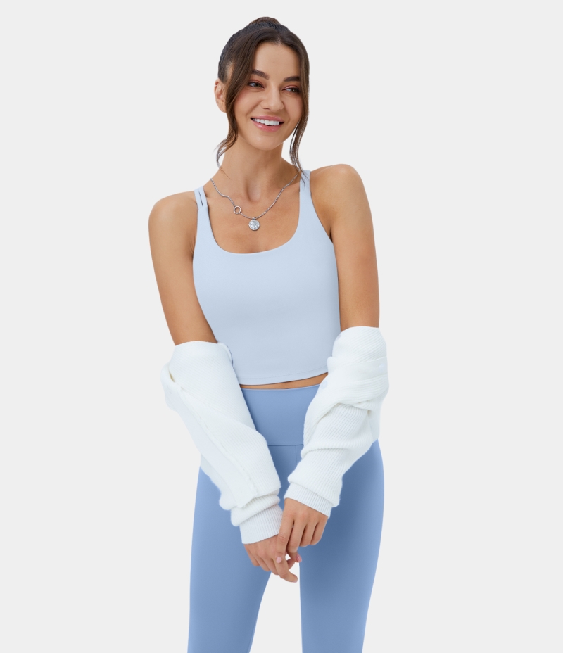 Halara Backless Crisscross Double Straps Cut Out Cropped Yoga Tank Women's Tops Ancient Water | GRNBSTU-53