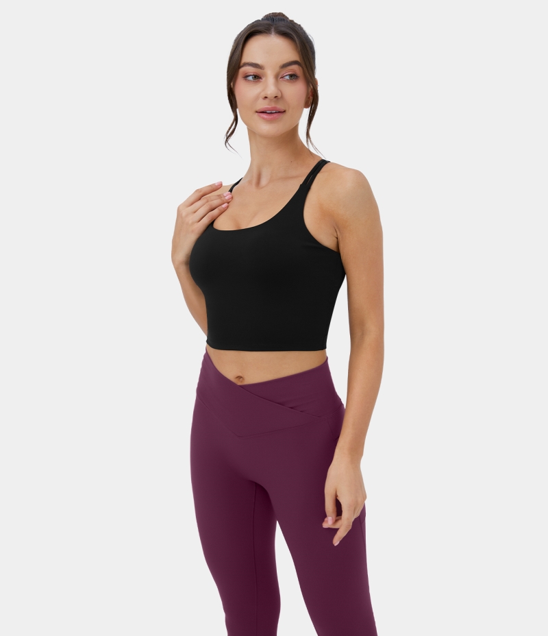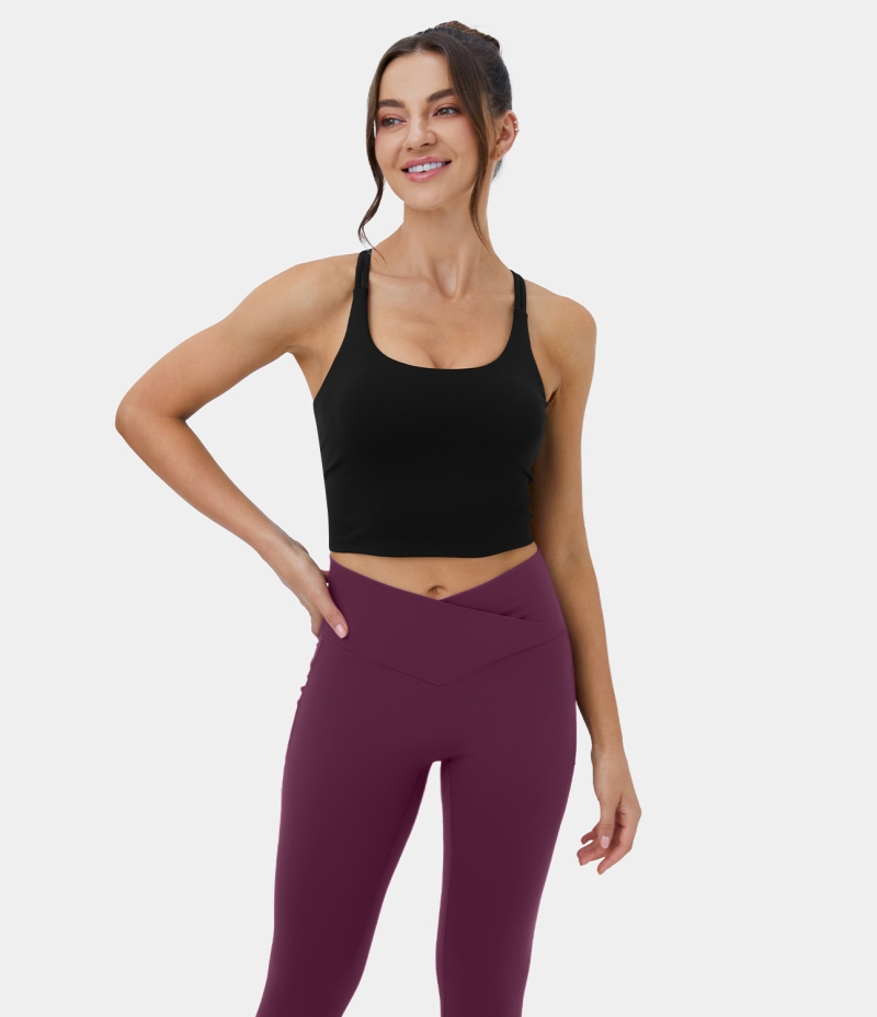 Halara Backless Crisscross Double Straps Cut Out Cropped Yoga Tank Women's Tops Black | UJWPNBS-86