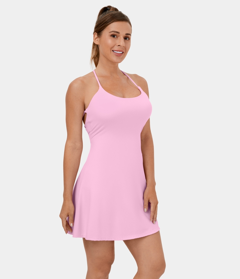 Halara Backless Crisscross Lace Up 2-Piece Side Pocket Mini Dance Women's Dress Pink Frosting | 592847-ZMO