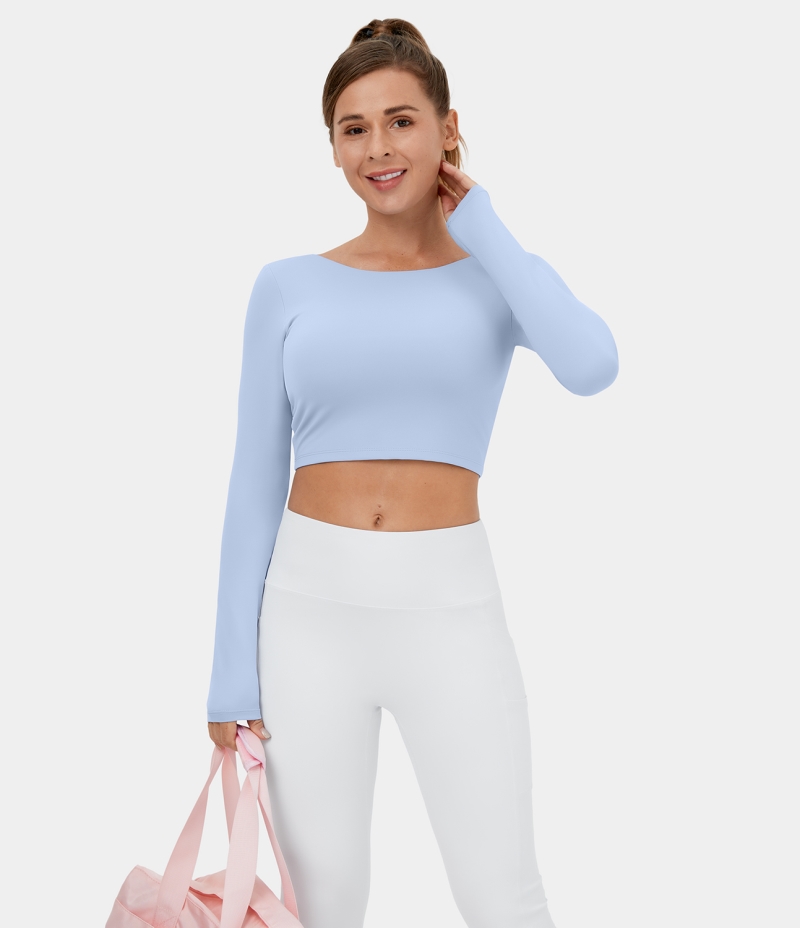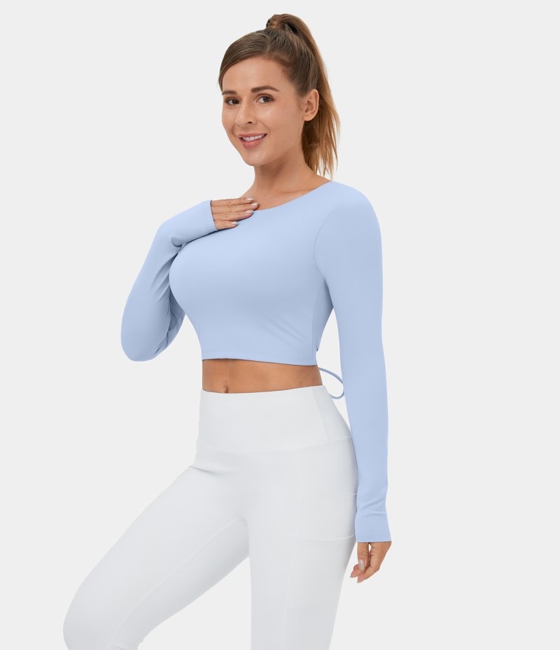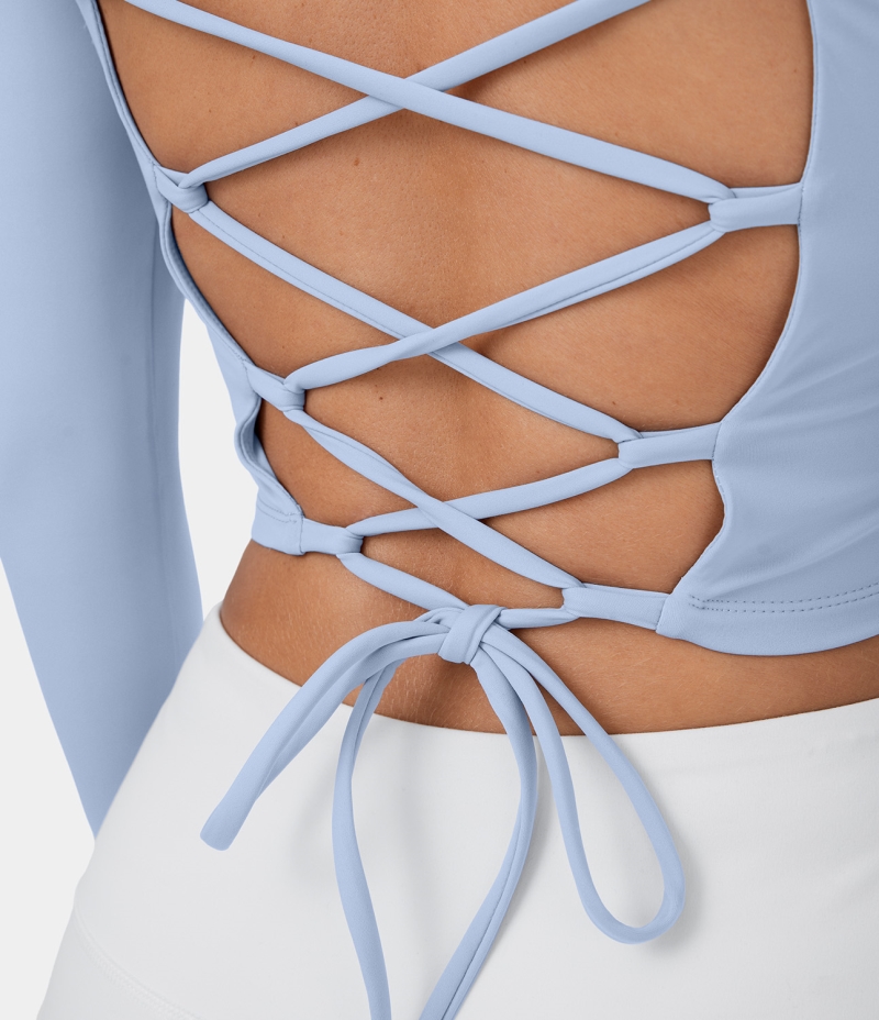 :: Halara Backless Crisscross Lace Up Cropped Dance Sports Women's Tops Light Steel Blue | JQDIVYN-12
