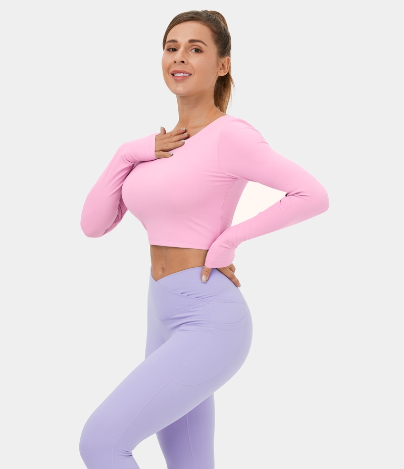 Halara Backless Crisscross Lace Up Cropped Dance Sports Women's Tops Pink Frosting | PDXASVF-82