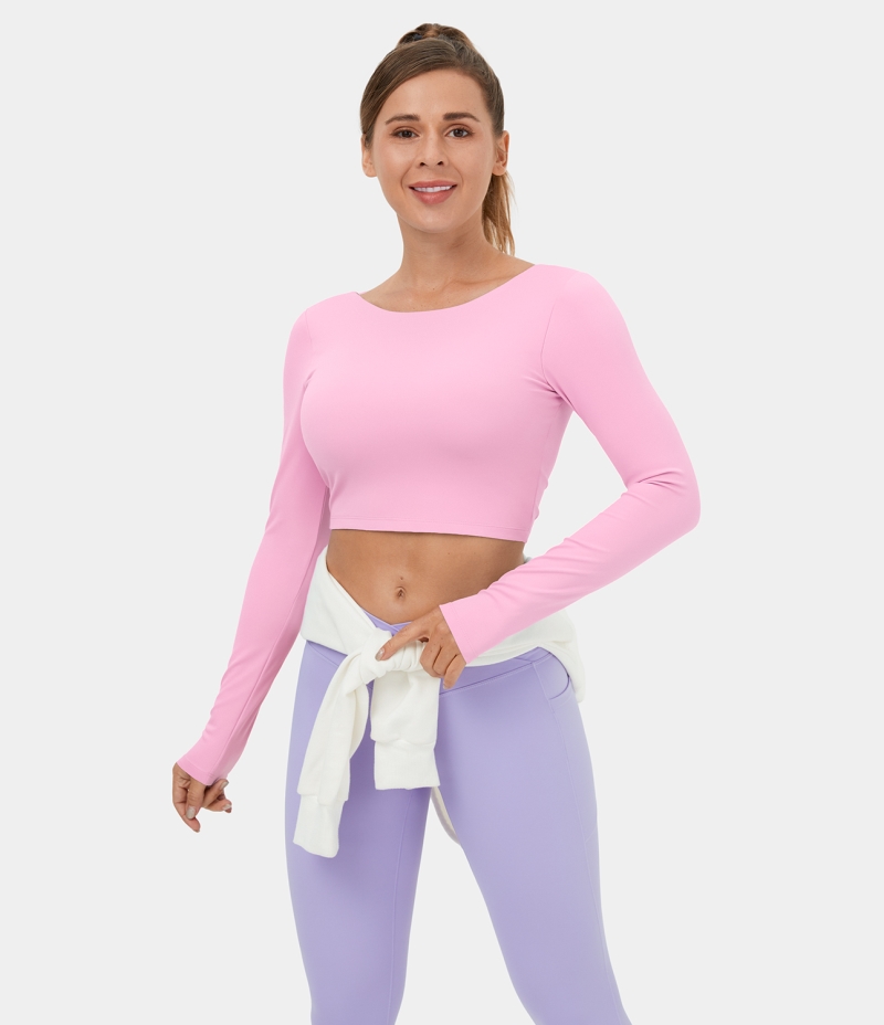 :: Halara Backless Crisscross Lace Up Cropped Dance Sports Women's Tops Pink Frosting | PDXASVF-82