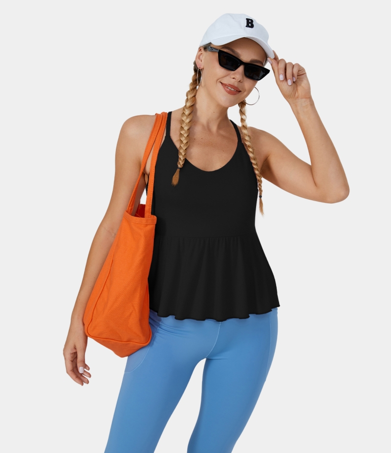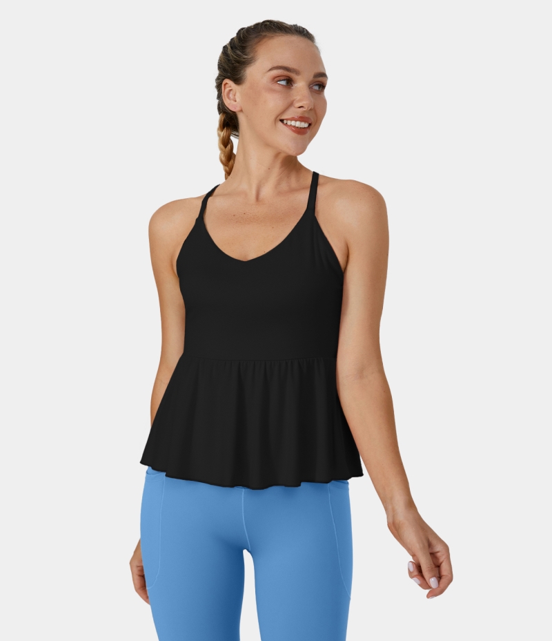 :: Halara Backless Crisscross Plicated Hem Barre Ballet Dance Tank Women's Tops Black | EMGXSDZ-79