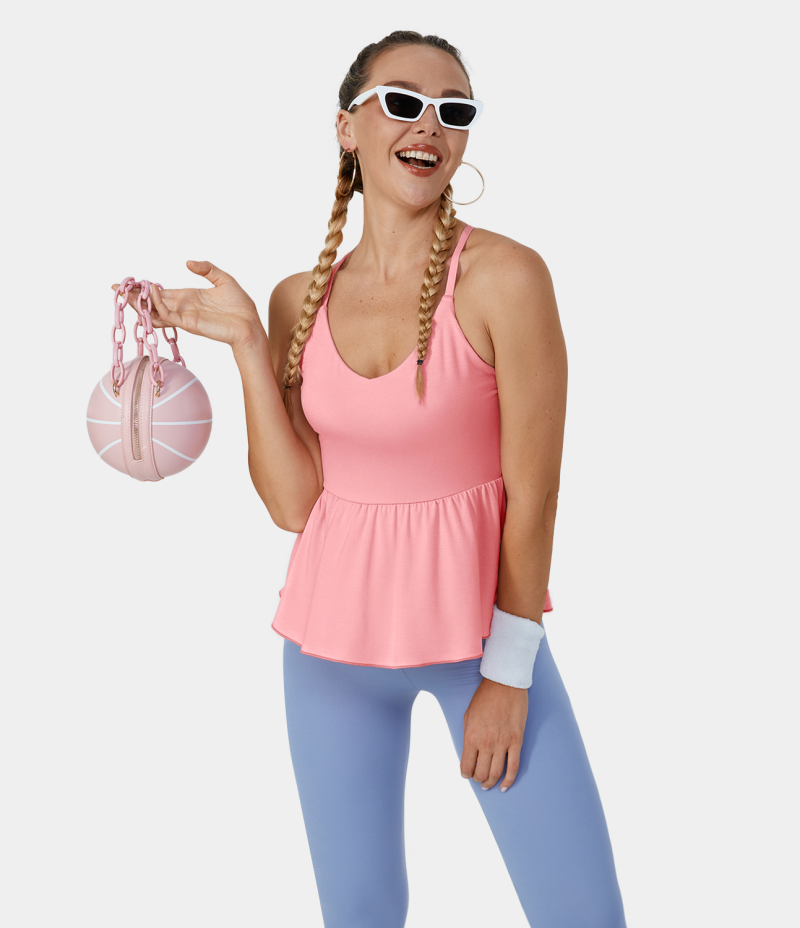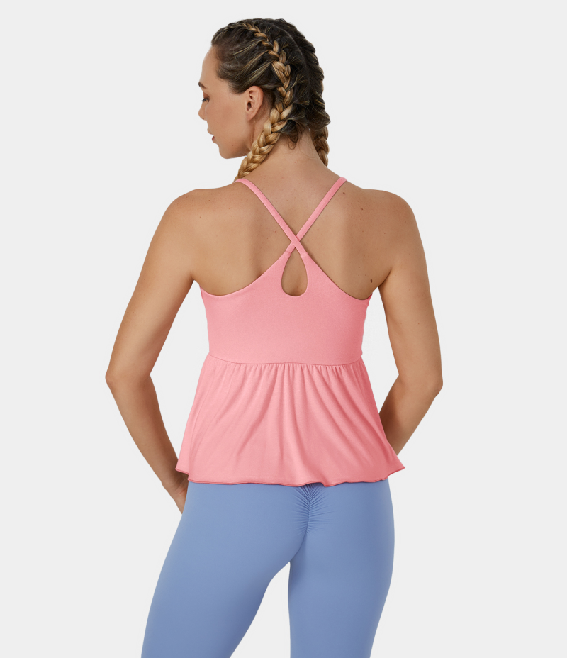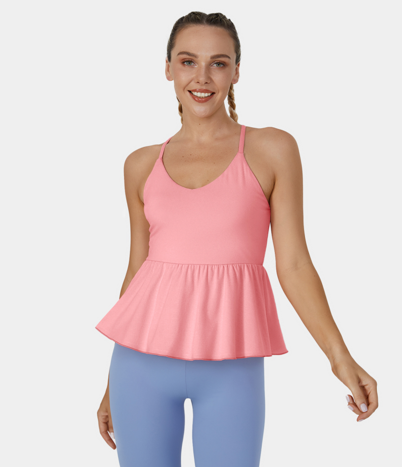 :: Halara Backless Crisscross Plicated Hem Barre Ballet Dance Tank Women's Tops Pink Icing | AJODGHT-13