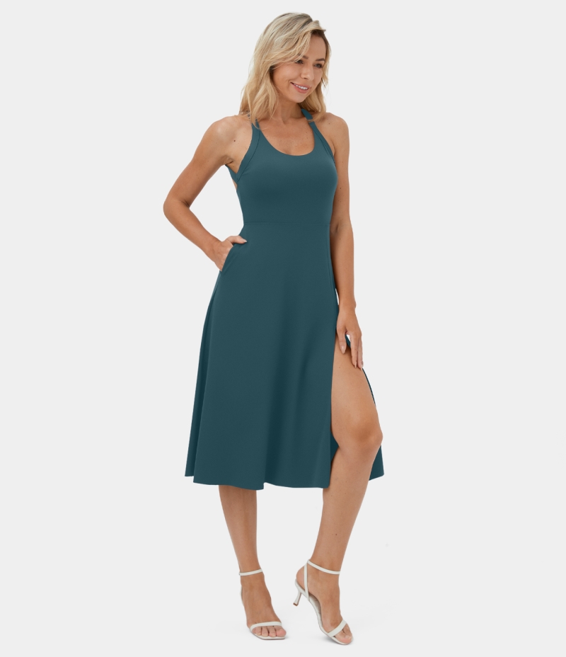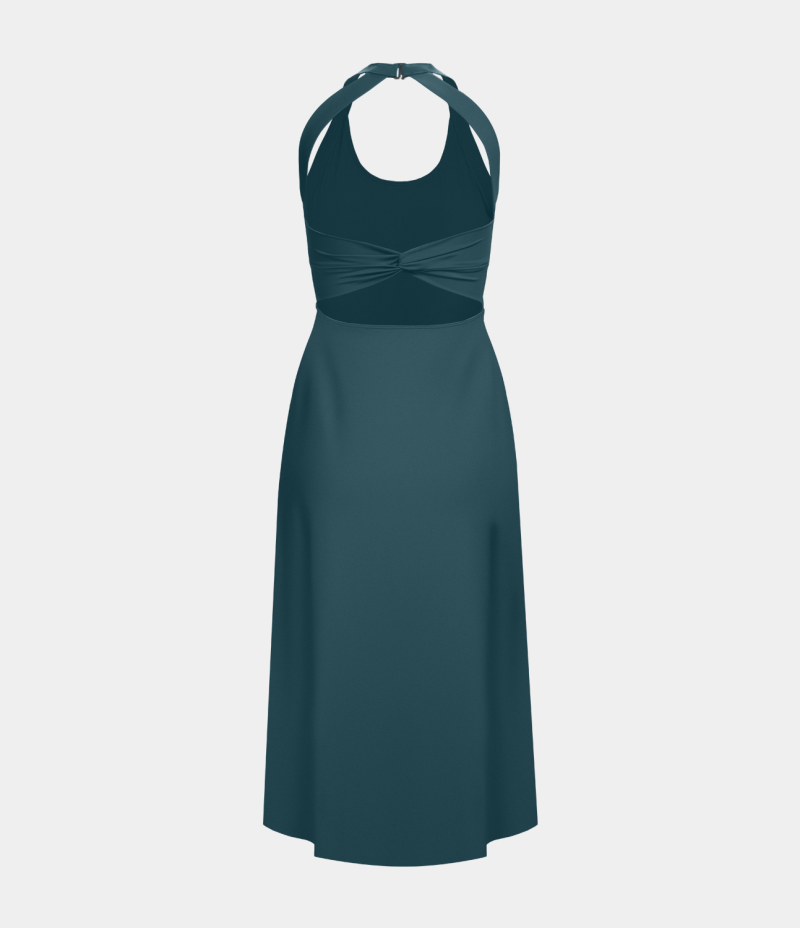 :: Halara Backless Cut Out Twisted Side Pocket Split Midi Casual Women's Dress Balsam | 491607-ZYB