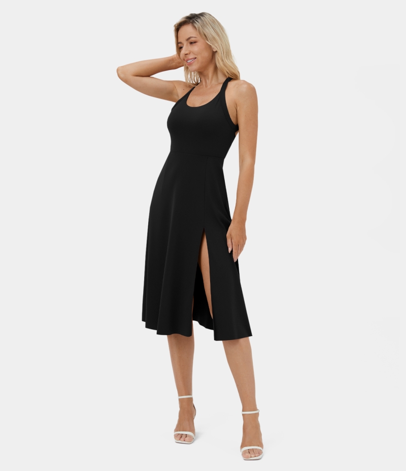 :: Halara Backless Cut Out Twisted Side Pocket Split Midi Casual Women's Dress Black | 537948-UOK