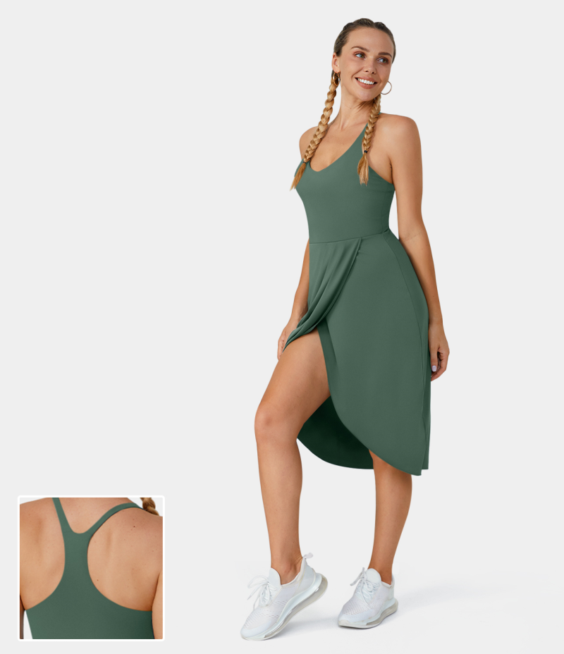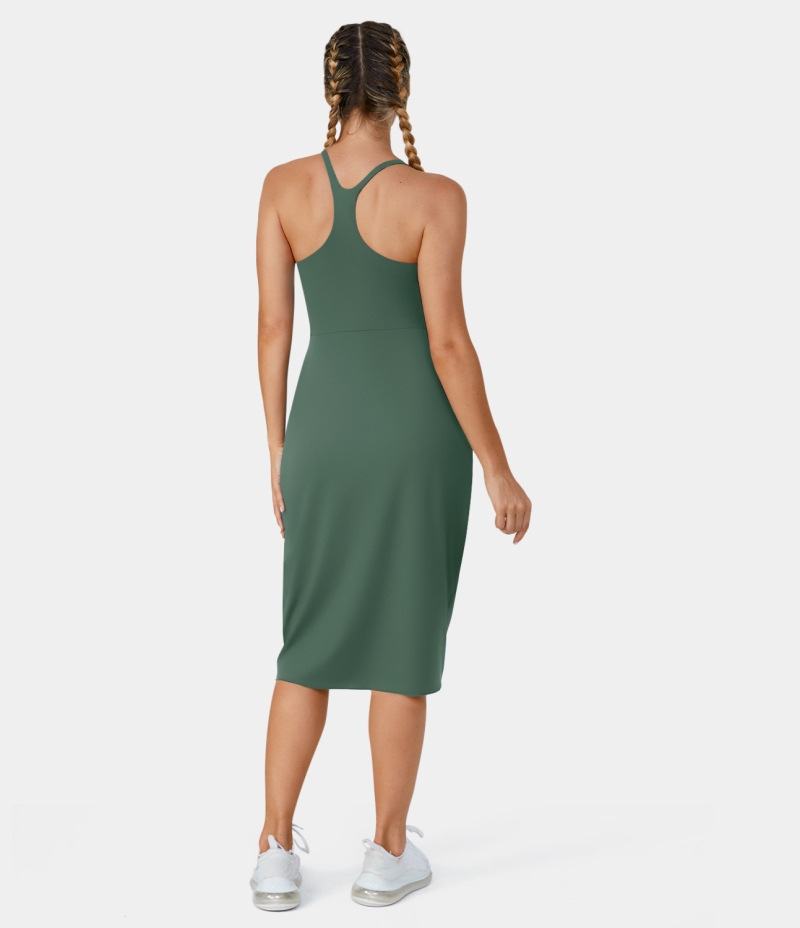 Halara Backless Racerback Split Asymmetric Hem Ruched Casual Midi-No Liner Shorts Women's Dress Blue Spruce | 036127-YCL