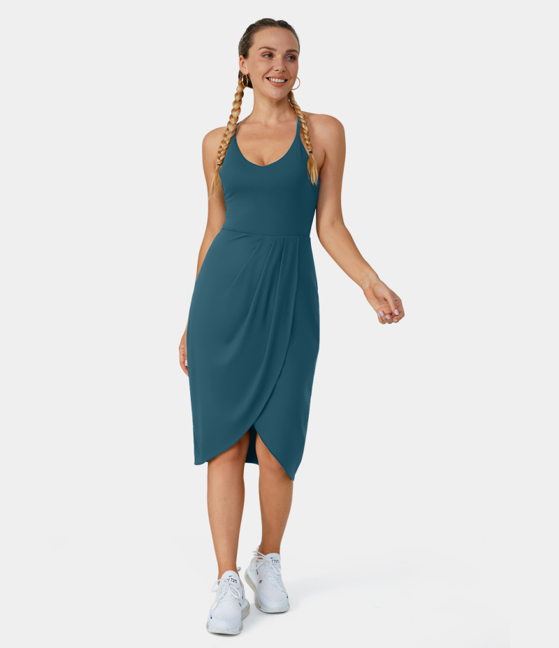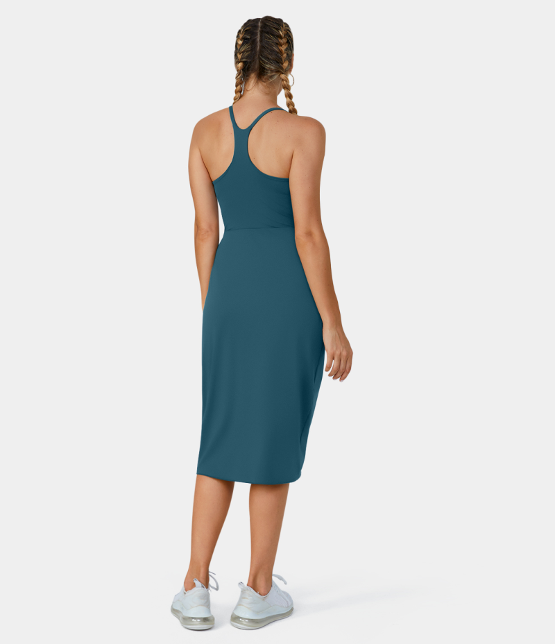 Halara Backless Racerback Split Asymmetric Hem Ruched Casual Midi-No Liner Shorts Women's Dress Indian Teal | 209187-LGX