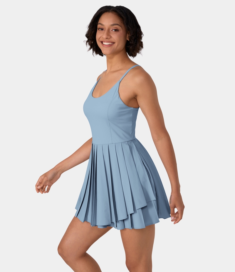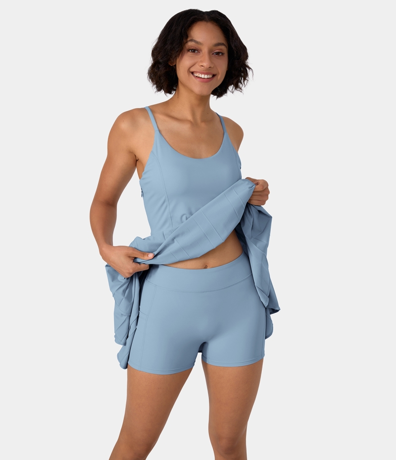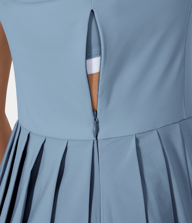 :: Halara Backless Side Pocket 2-Piece Pleated Barre Ballet Dance Women's Dress Soft Chambray | 210384-ZUJ
