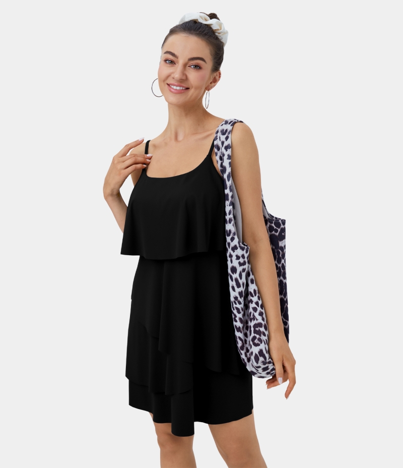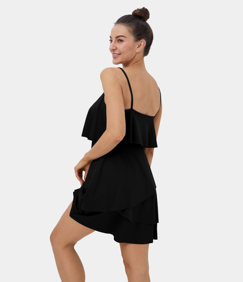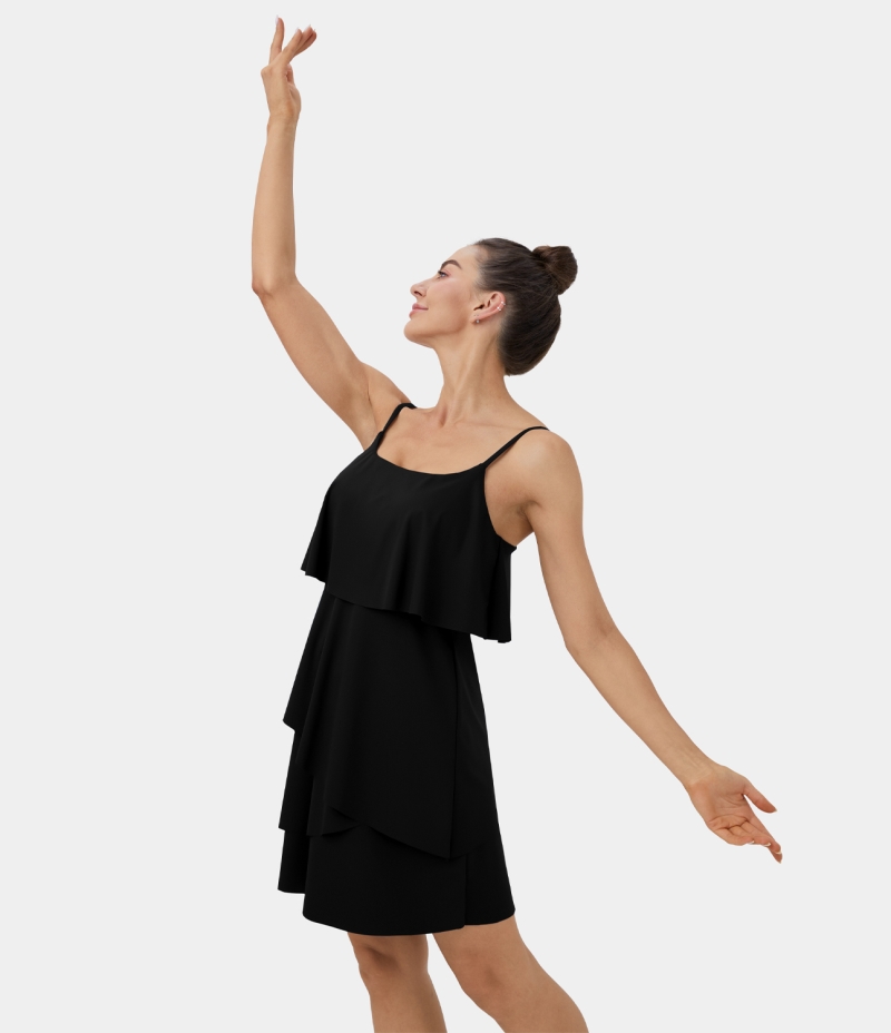 :: Halara Backless Tiered Ruffle Mini Barre Ballet Dance Women's Dress Black | 097518-GST