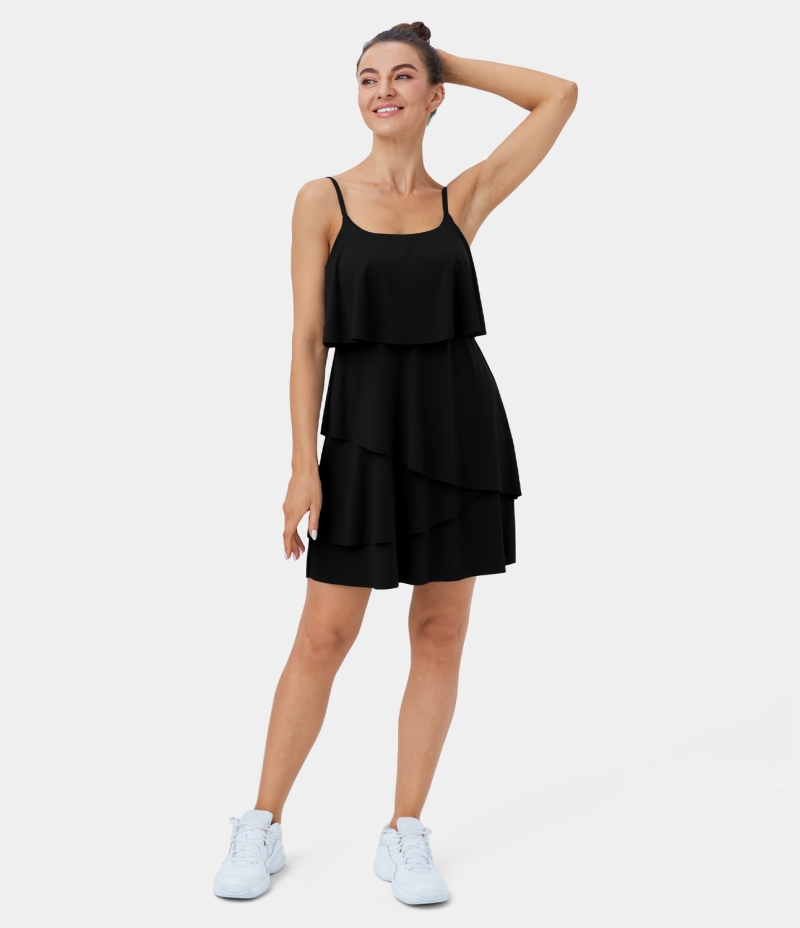 Halara Backless Tiered Ruffle Mini Barre Ballet Dance Women's Dress Black | 097518-GST