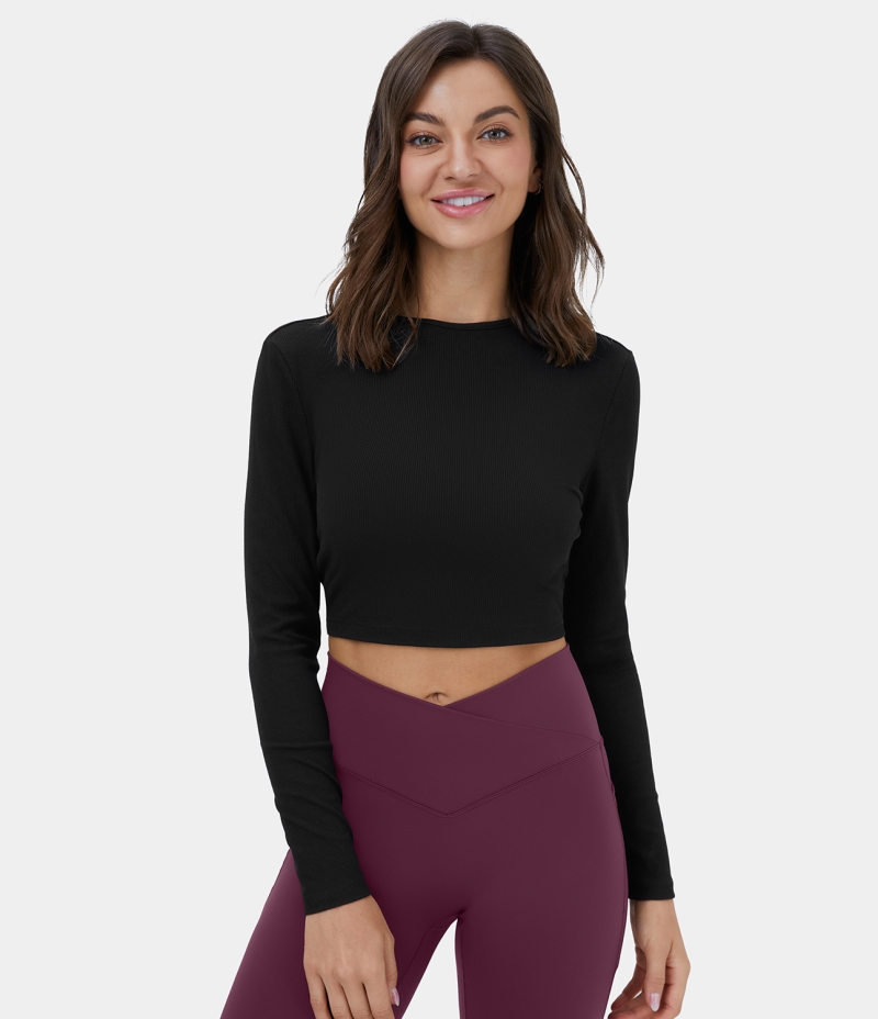 :: Halara Backless Twisted Cropped Casual Sports Women's Tops Black | HUMVWNJ-64