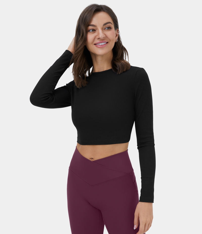 Halara Backless Twisted Cropped Casual Sports Women's Tops Black | HUMVWNJ-64