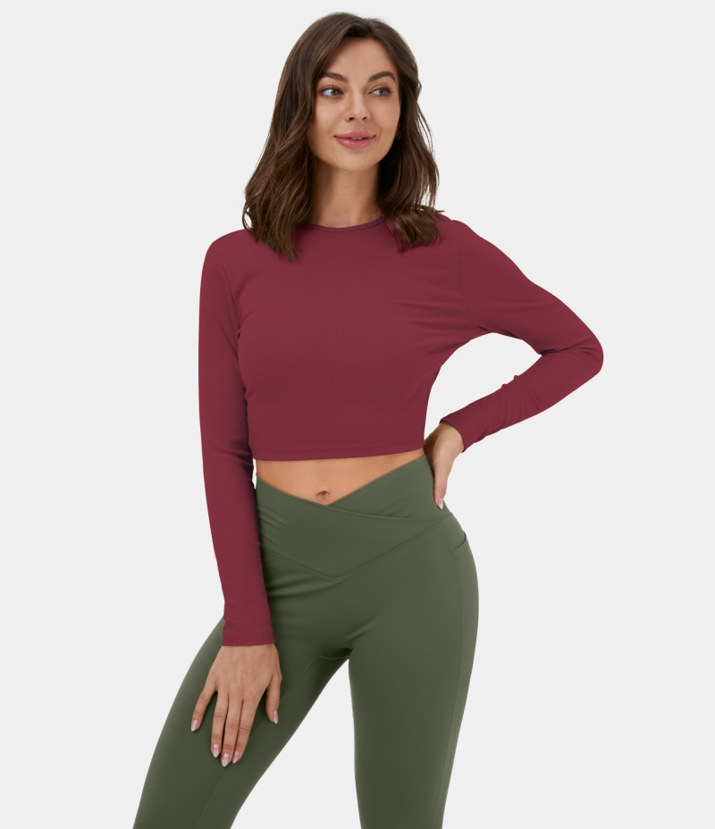 Halara Backless Twisted Cropped Casual Sports Women's Tops Ruby Wine | FIVWABG-50