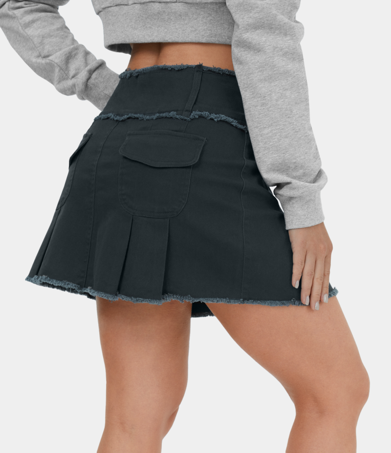 :: Halara Belted Button Zipper Back Pocket Ruched Raw Hem A Line Casual Women's Skirts Dark Grey | 568109-DFB