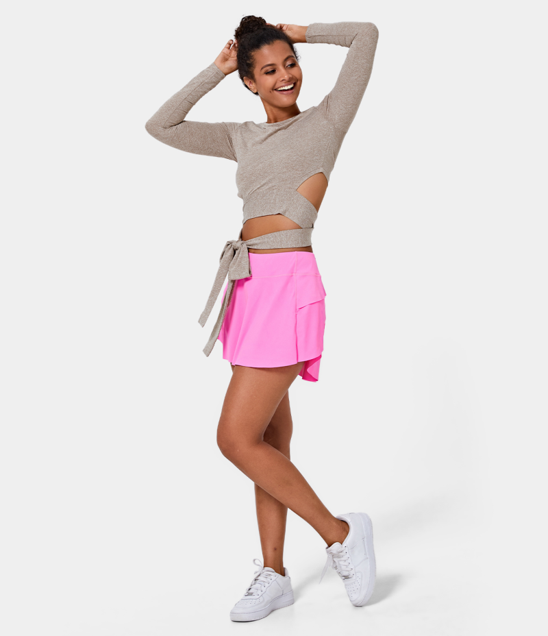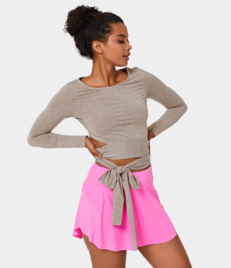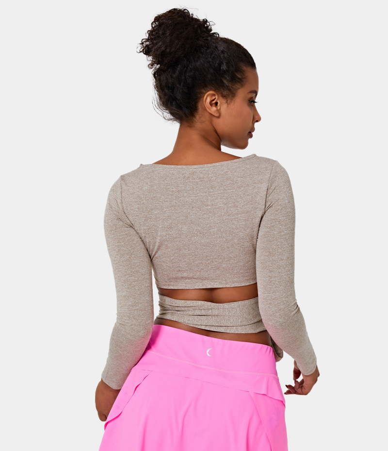:: Halara Boat Neck Long Sleeve Cut Out Lace Up Sports Women's Tops Mink Ash | SHELUQD-37