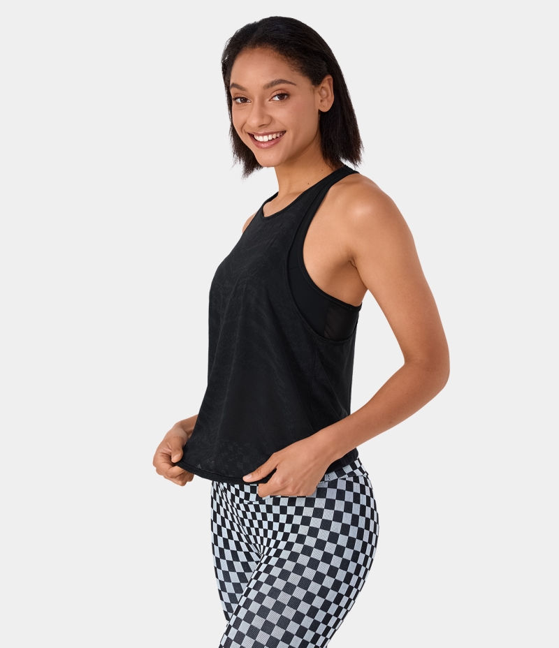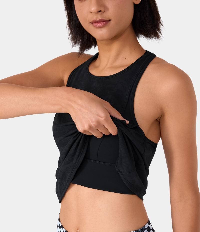 :: Halara Breathable Racerback 2-in-1 Casual Tank Women's Tops Black | RBFMWTE-67