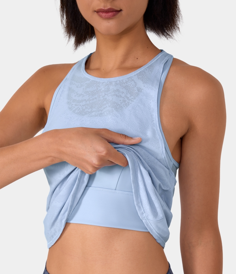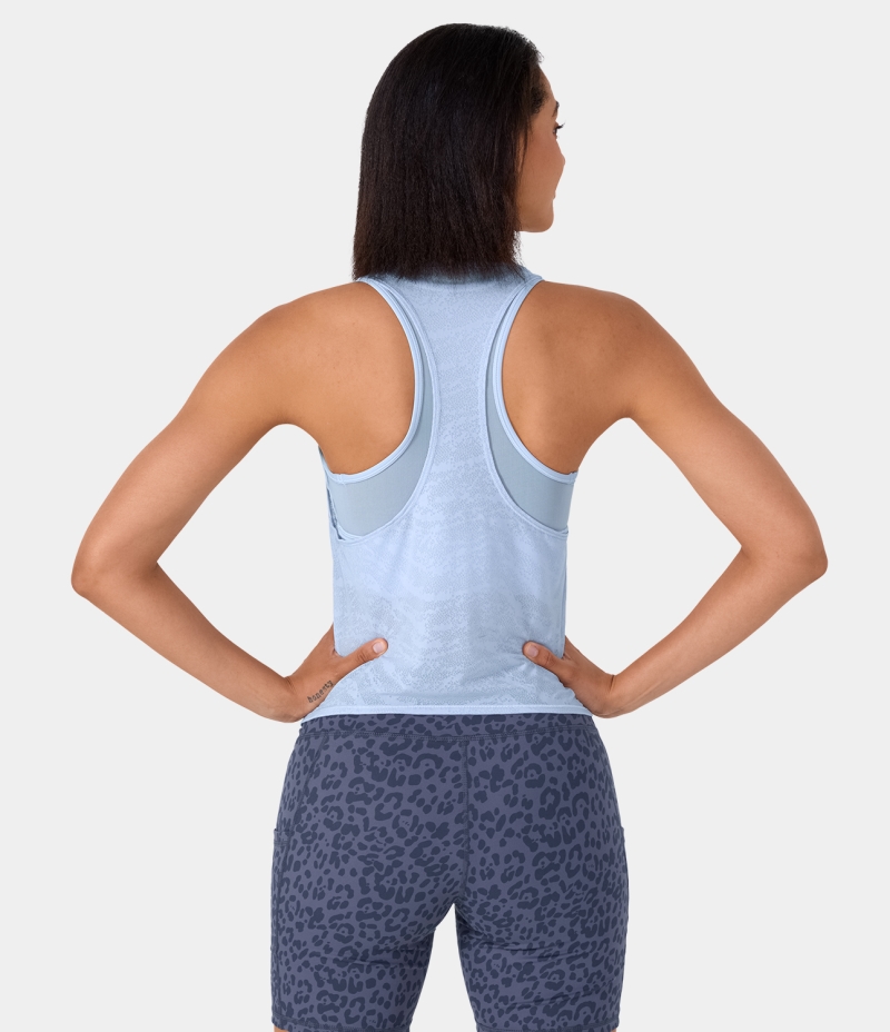 :: Halara Breathable Racerback 2-in-1 Casual Tank Women's Tops Ice Water | BVDRJLT-51