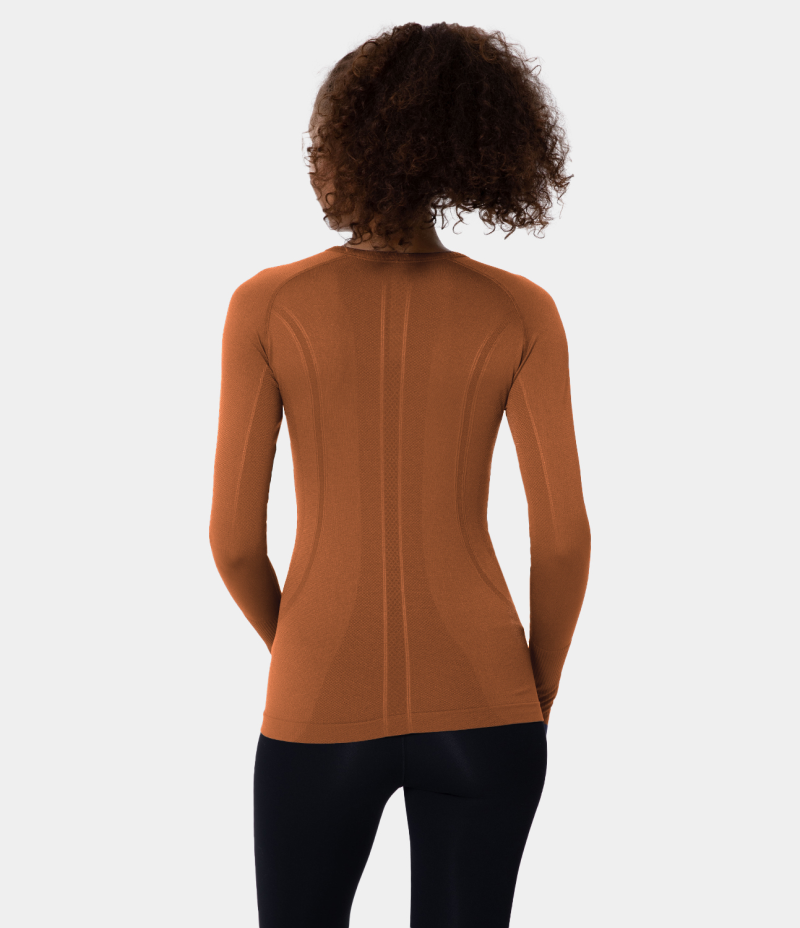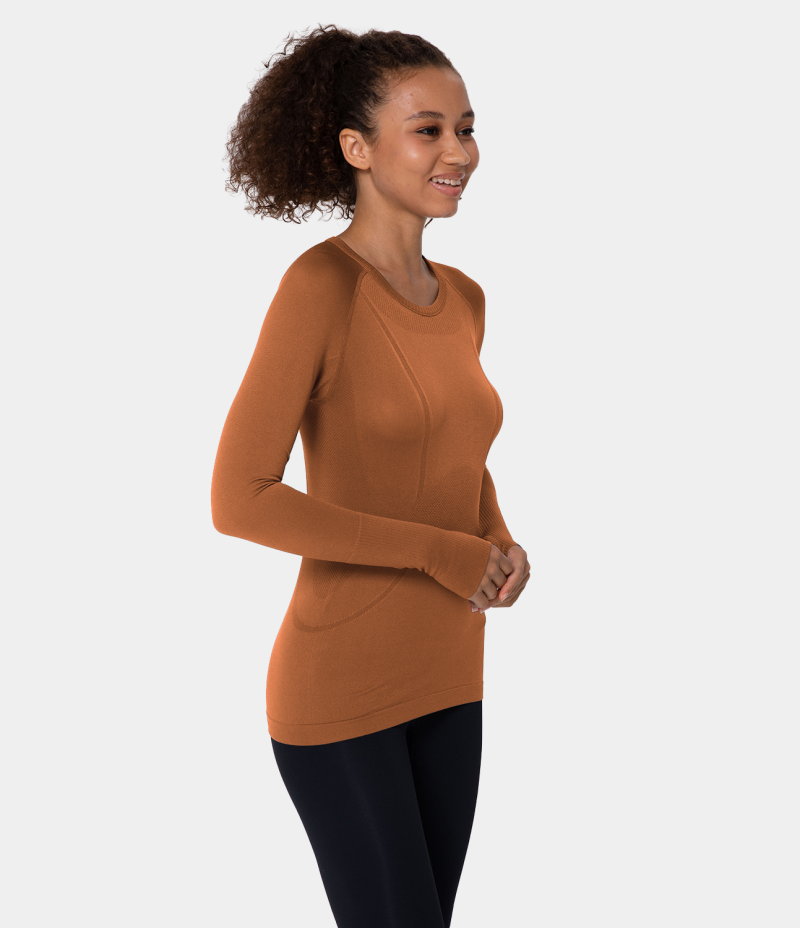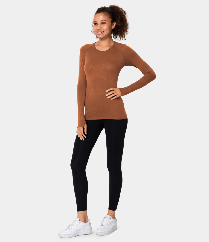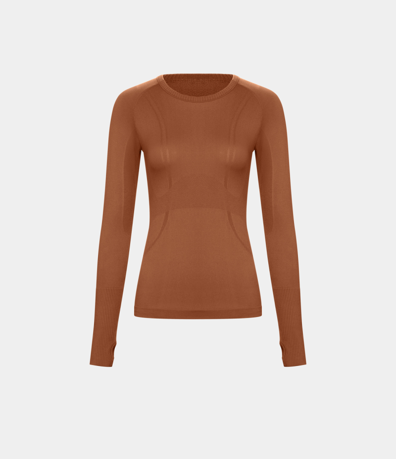 :: Halara Breathable Round Neck Thumb Hole Sports Women's Tops Brown | QJAURIG-60