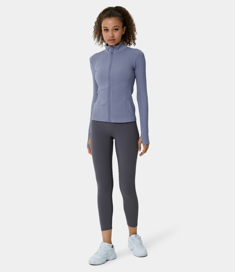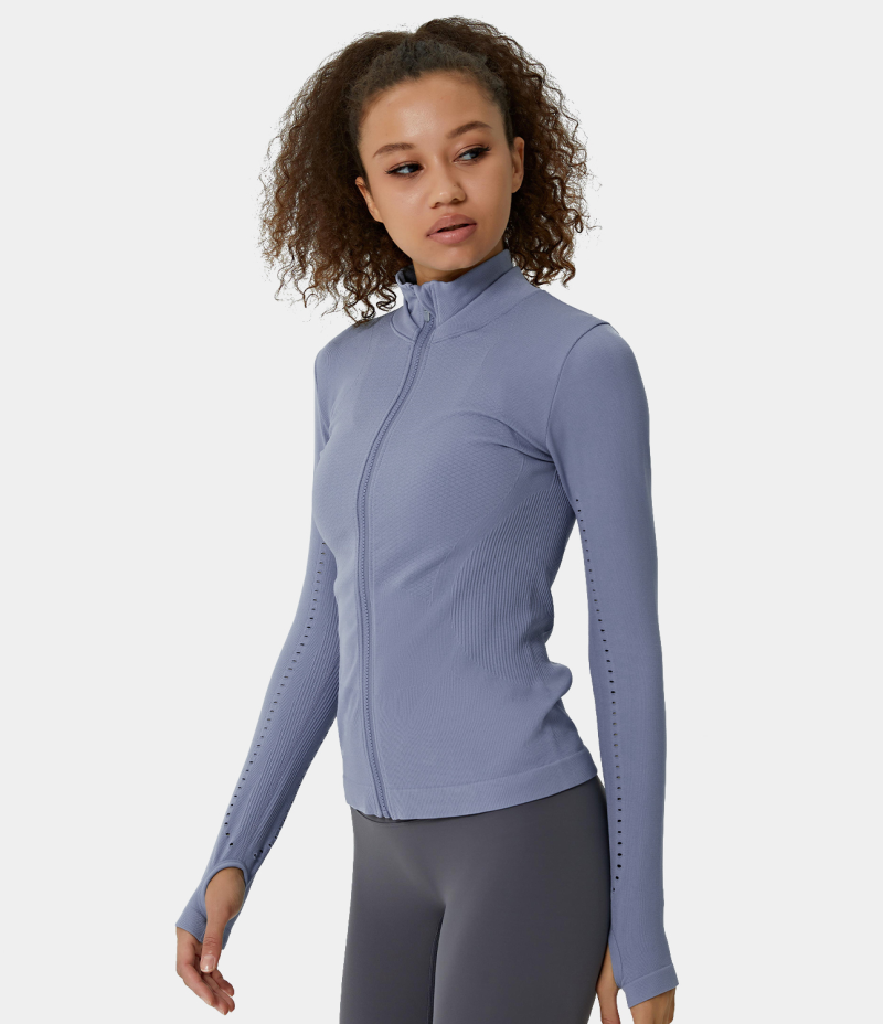:: Halara Breathable Zipper Thumb Hole Sports Jacket Women's Tops Smoke Blue | XPCSWHU-49