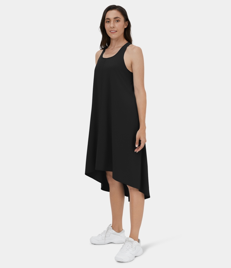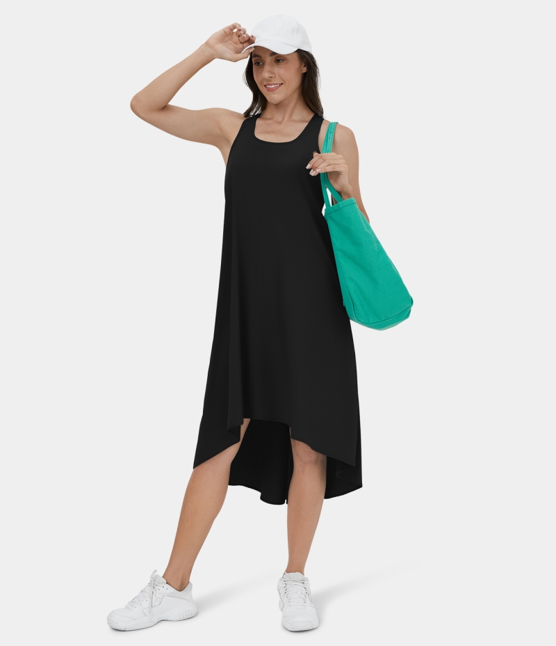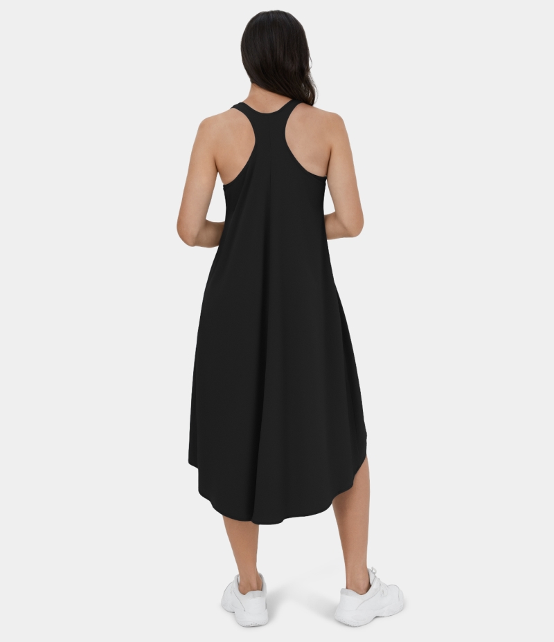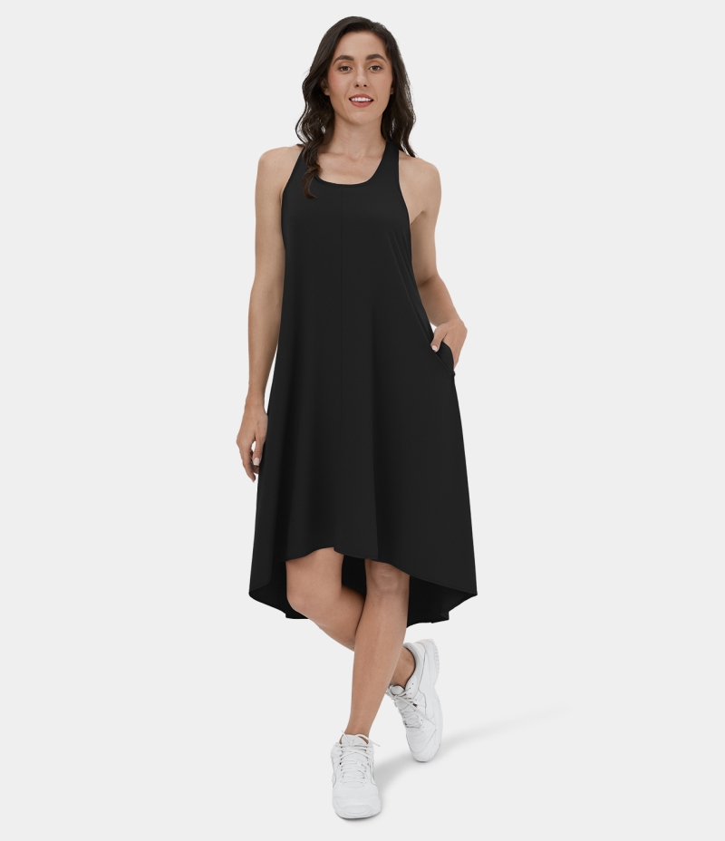 Halara Breezeful Racerback Side Pocket High Low Midi Casual Women's Dress Black | 953067-WZL