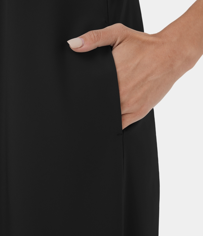 :: Halara Breezeful Racerback Side Pocket High Low Midi Casual Women's Dress Black | 953067-WZL