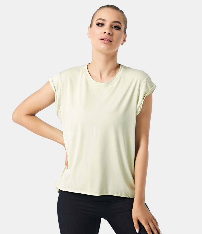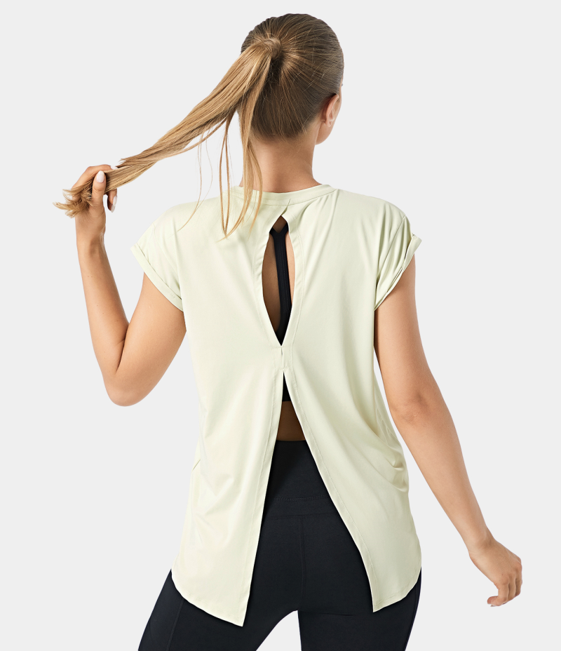 :: Halara Cap Sleeve Cut Out Split Hem Tie Back Sports Women's Tops Spring Green | ROPYTHJ-64