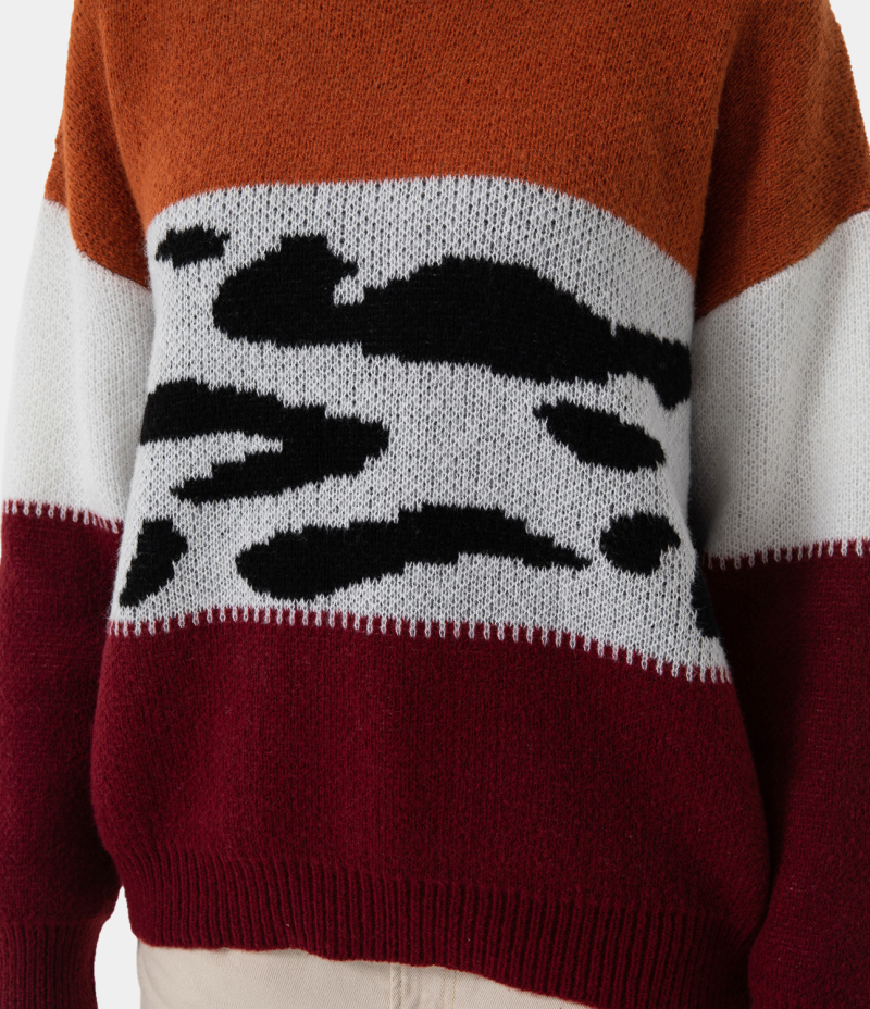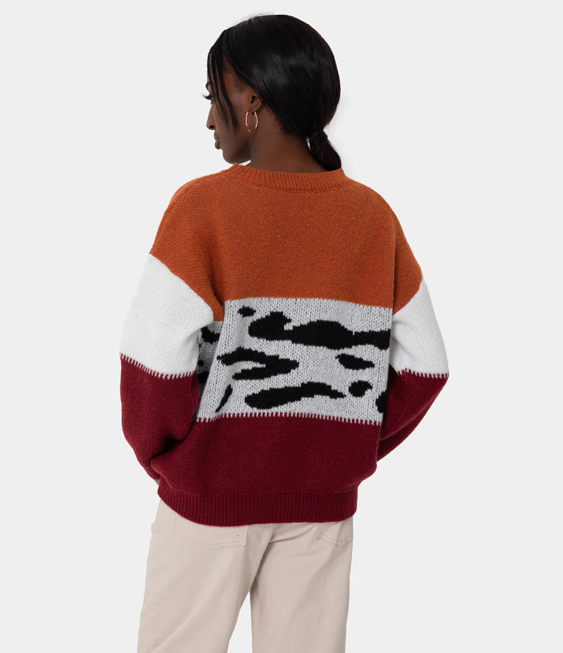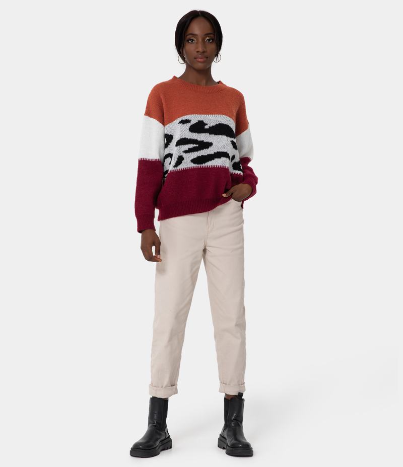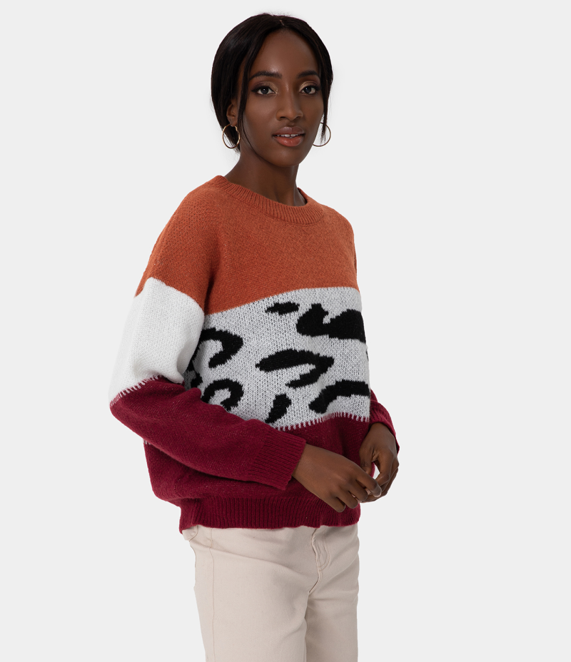 :: Halara Casual Color Block Dropped Shoulder Sweater Women's Tops Deep Wine | KZEQAMF-24