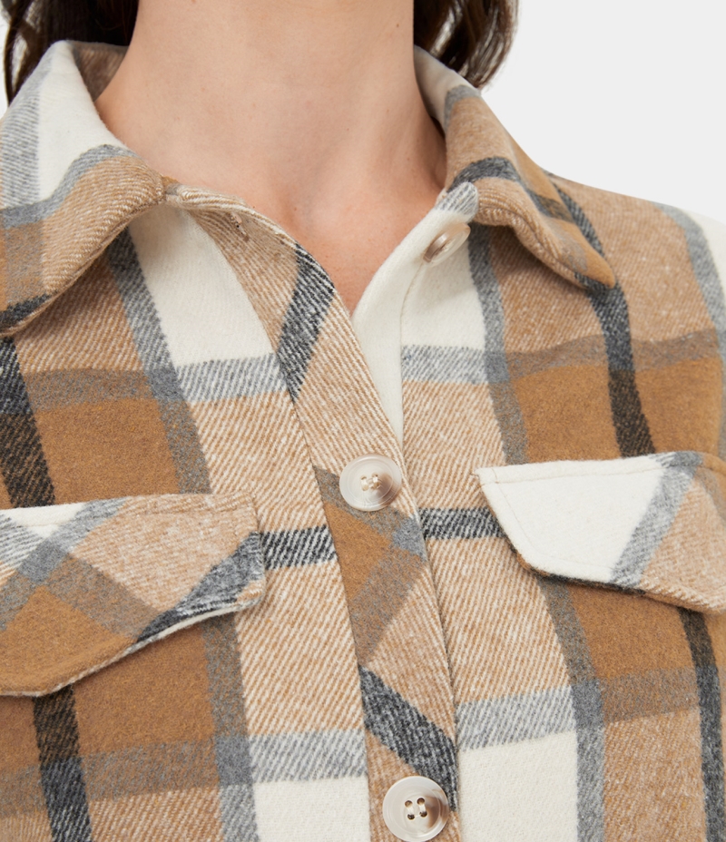 :: Halara Collared Button Lace Up Plaid Fleece Casual Jacket Women's Tops Khaki Plaid | ALDKSRW-39