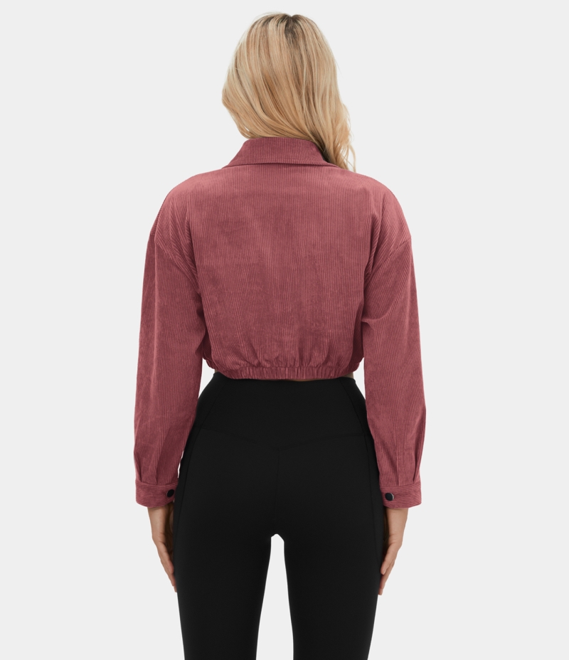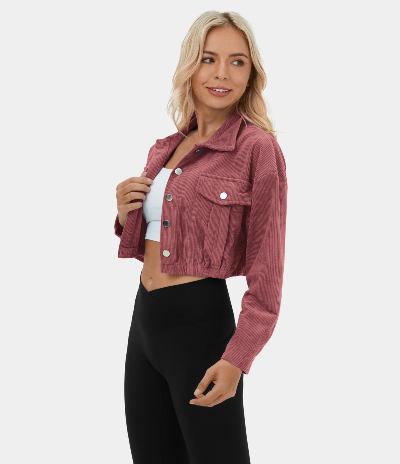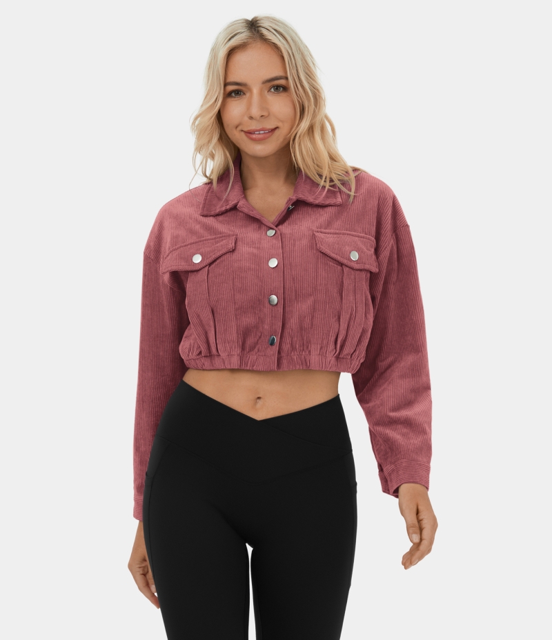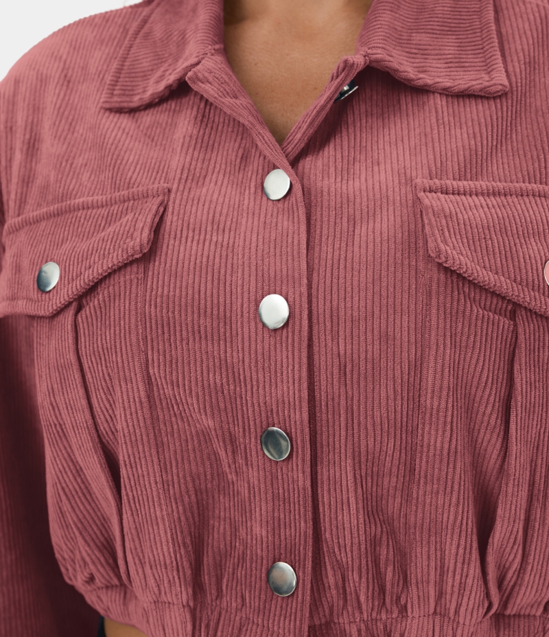 :: Halara Collared Button Pocket Cropped Corduroy Casual Jacket Women's Tops Mauvewood | UXTWJMK-71