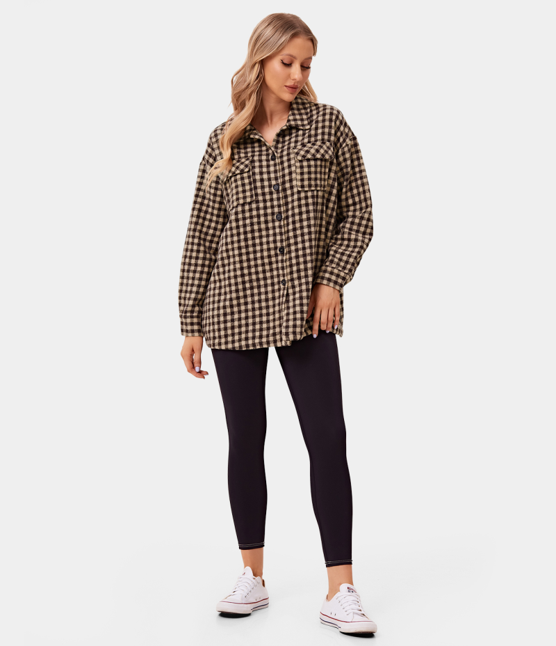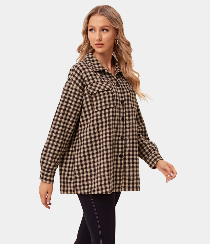 Halara Collared Button Pocket Plaid Shirt Women's Tops Mustard Brown | YSANROM-52
