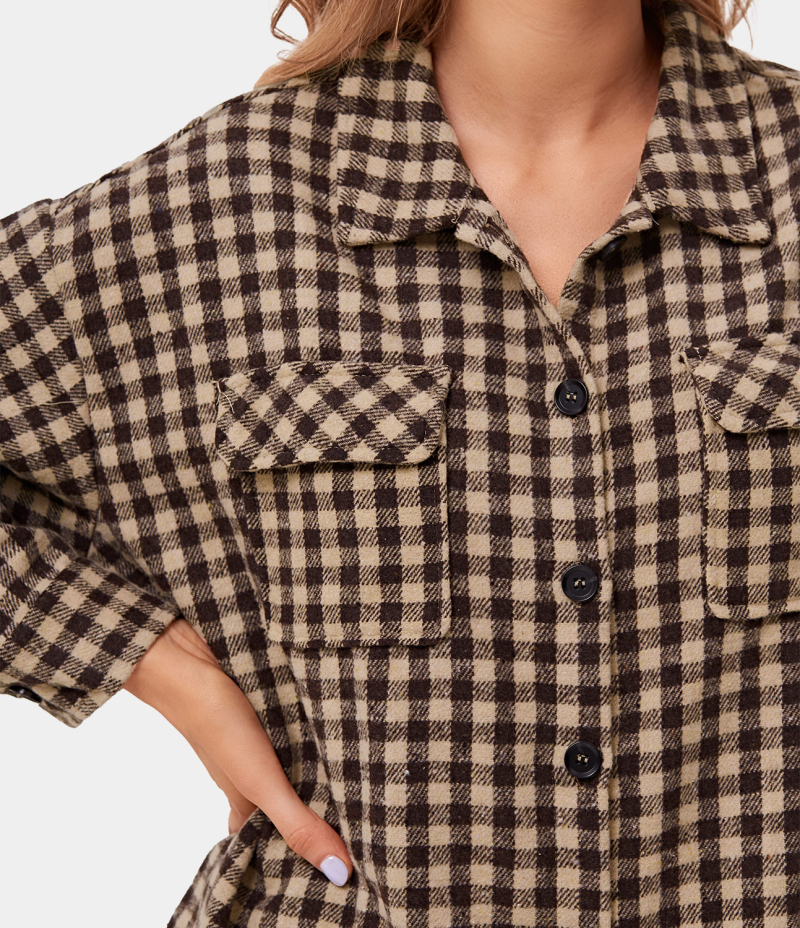 :: Halara Collared Button Pocket Plaid Shirt Women's Tops Mustard Brown | YSANROM-52