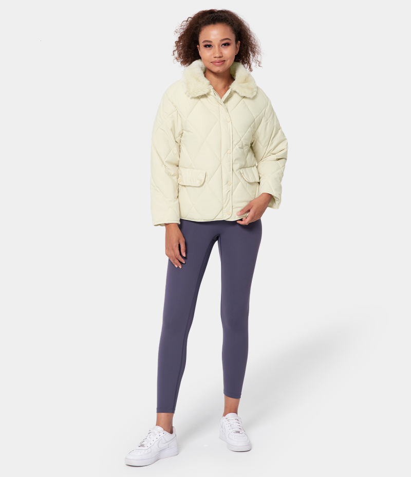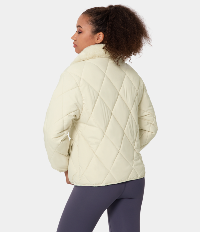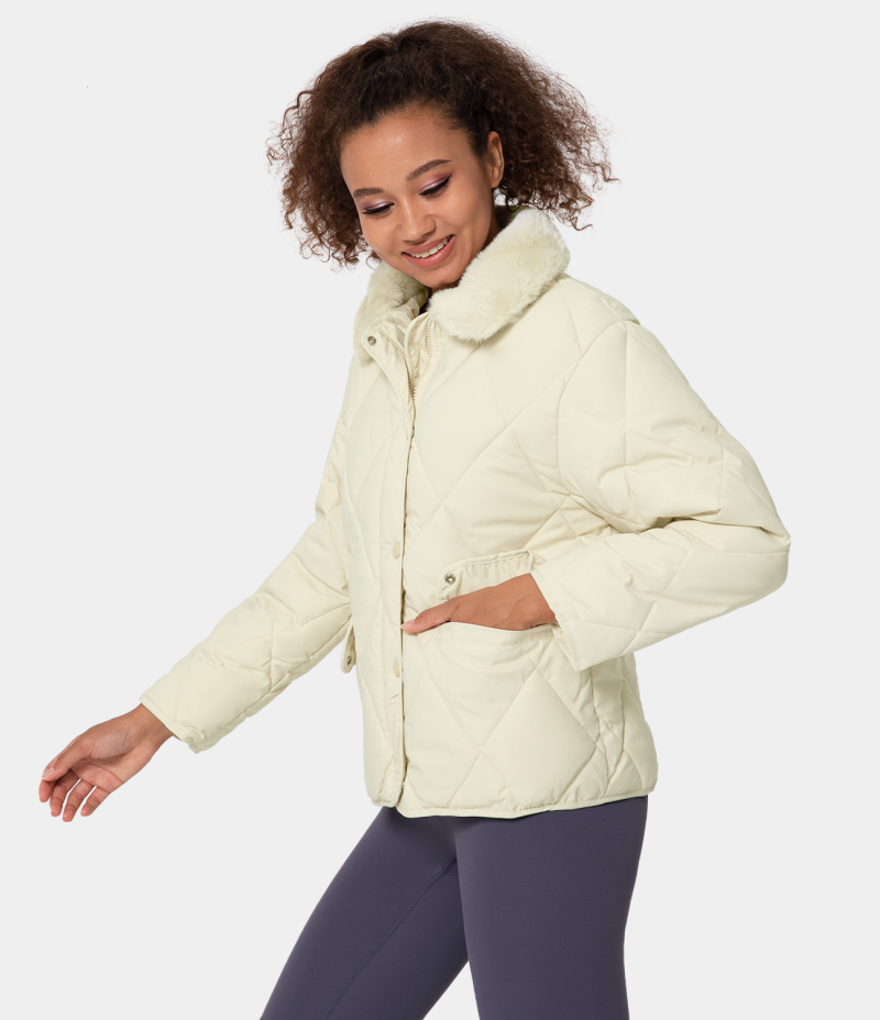 Halara Collared Button Zipper Pocket Padded Jacket Women's Tops Coconut White | YZKNDWS-92