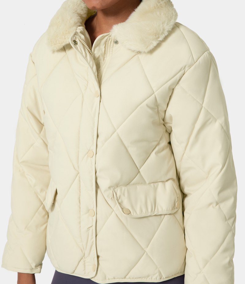 :: Halara Collared Button Zipper Pocket Padded Jacket Women's Tops Coconut White | YZKNDWS-92