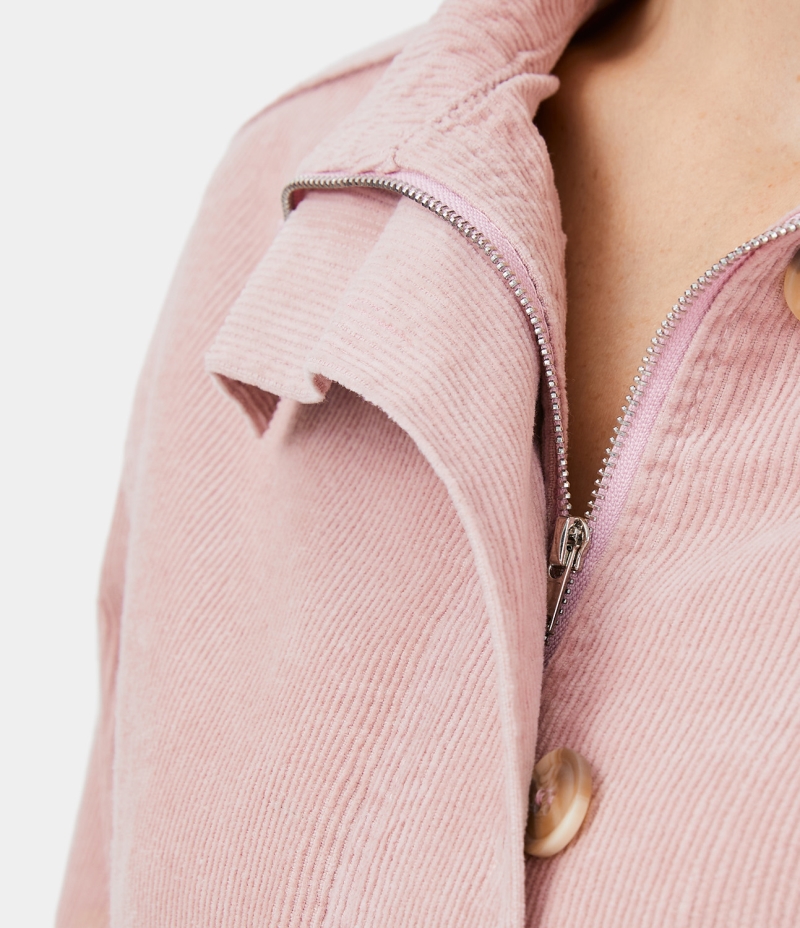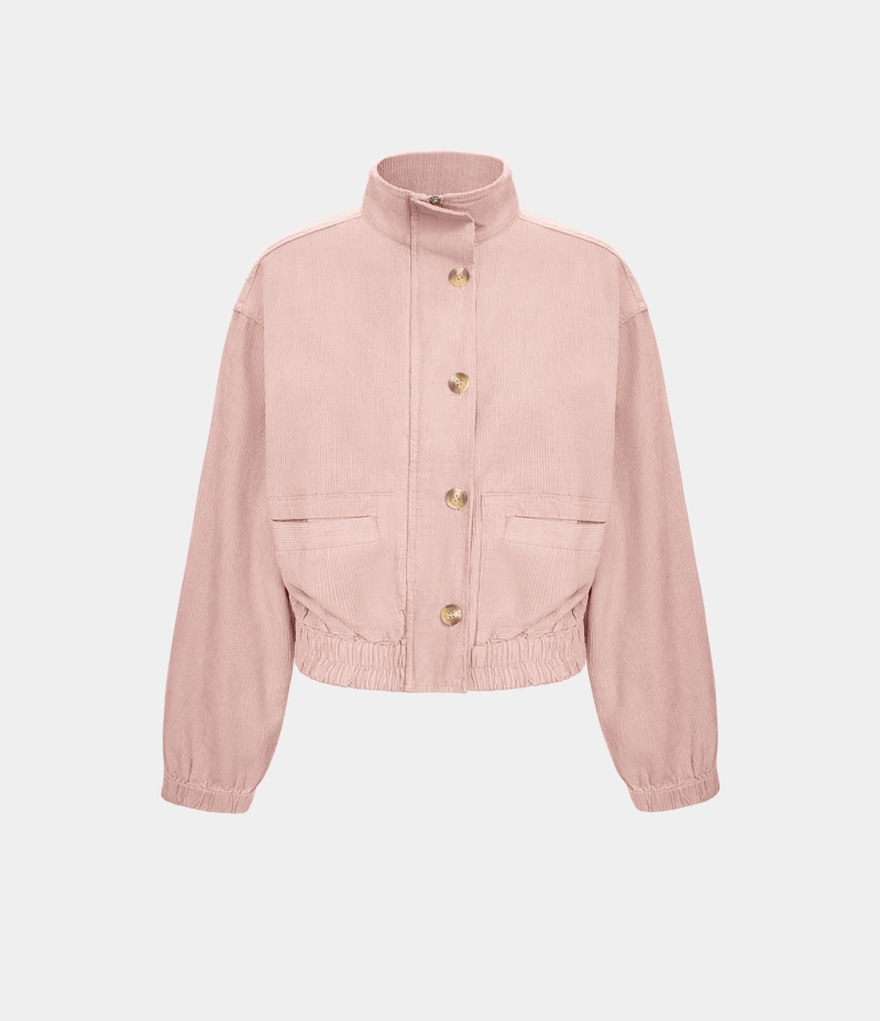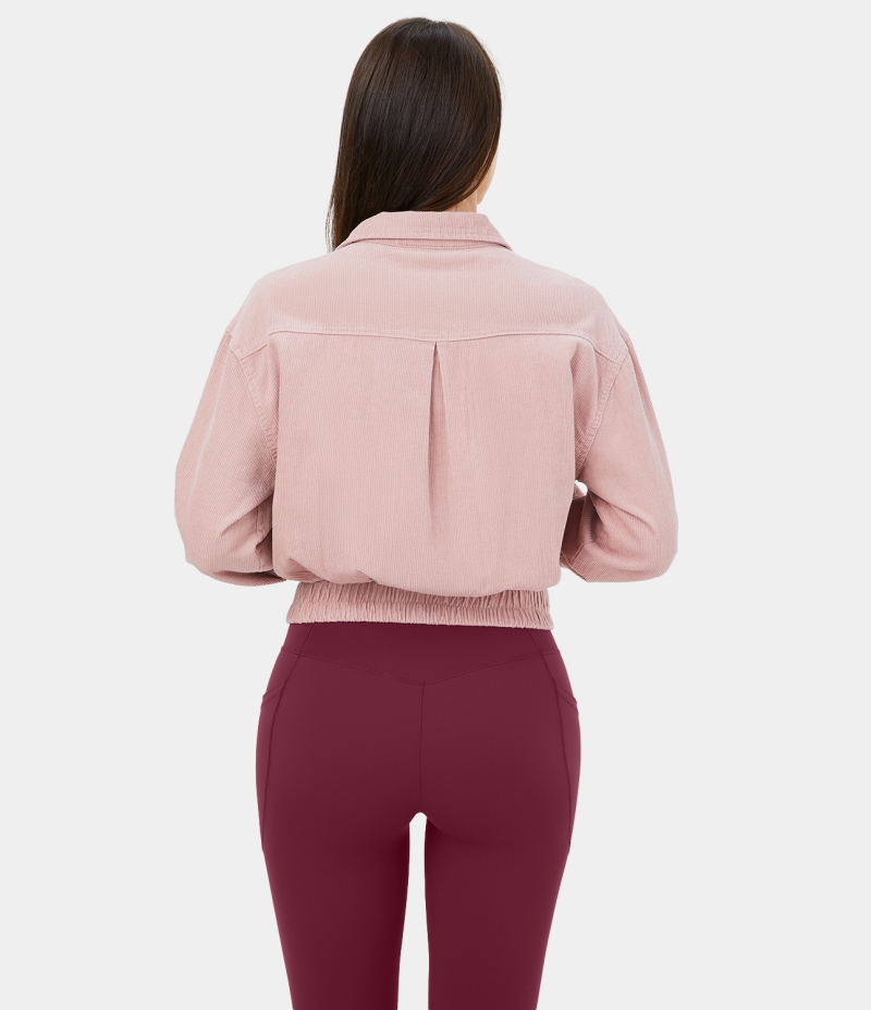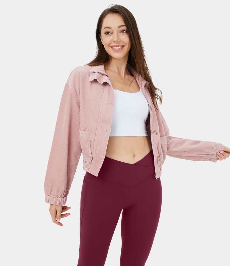 :: Halara Collared Button Zipper Side Pocket Cropped Corduroy Casual Jacket Women's Tops Lotus | LSYRHXD-97