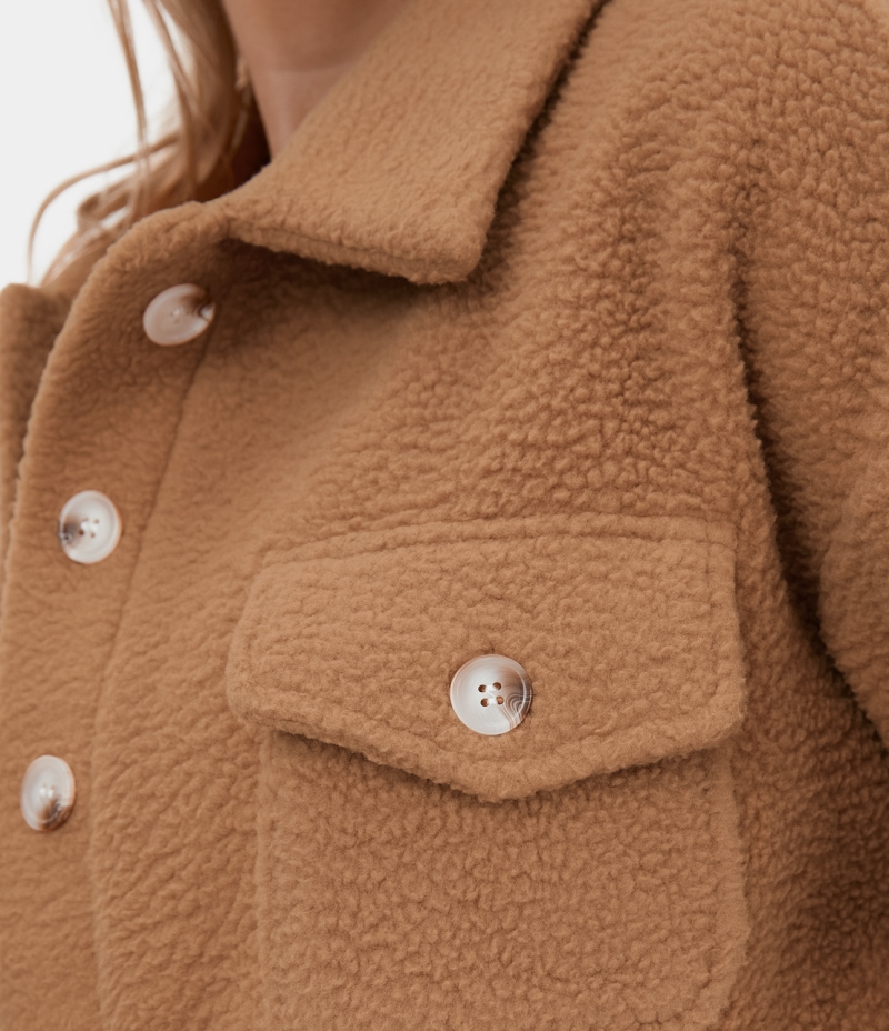 :: Halara Collared Dropped Shoulder Button Pocket Casual Fleece Jacket Women's Tops Bambi - Brown | FAZHREX-74