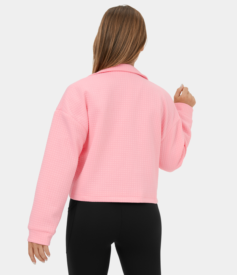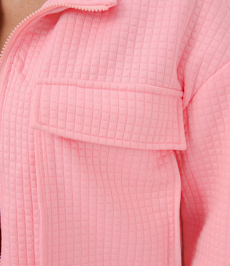 Halara Collared Full Zip Flap Pocket Cropped Fleece Casual Cargo Jacket Women's Tops Crystal Rose | VNEUZFM-12
